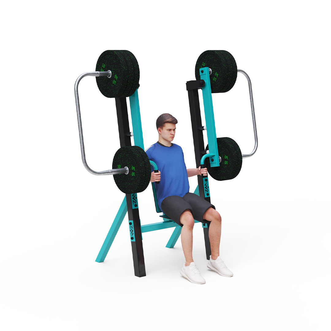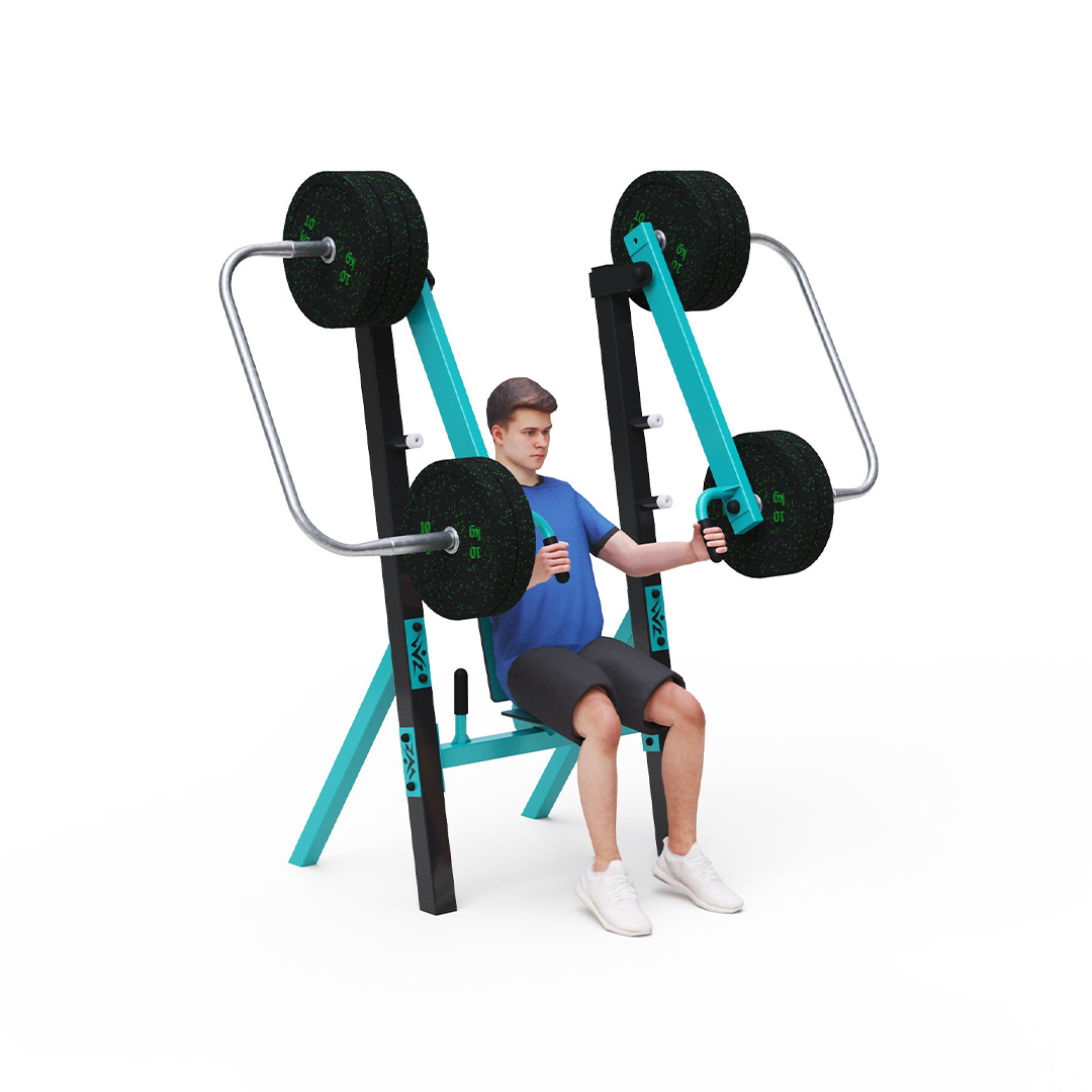 Gördülő súlyokkal ellátott fitneszgép, amely a felső végtagok, a vállak és a mellizmok edzésére szolgál. Akár 100 kg-os tolósúlyokat is tartalmaz, így nemcsak a kezdők, hanem a tapasztalt sportolók számára is alkalmas.