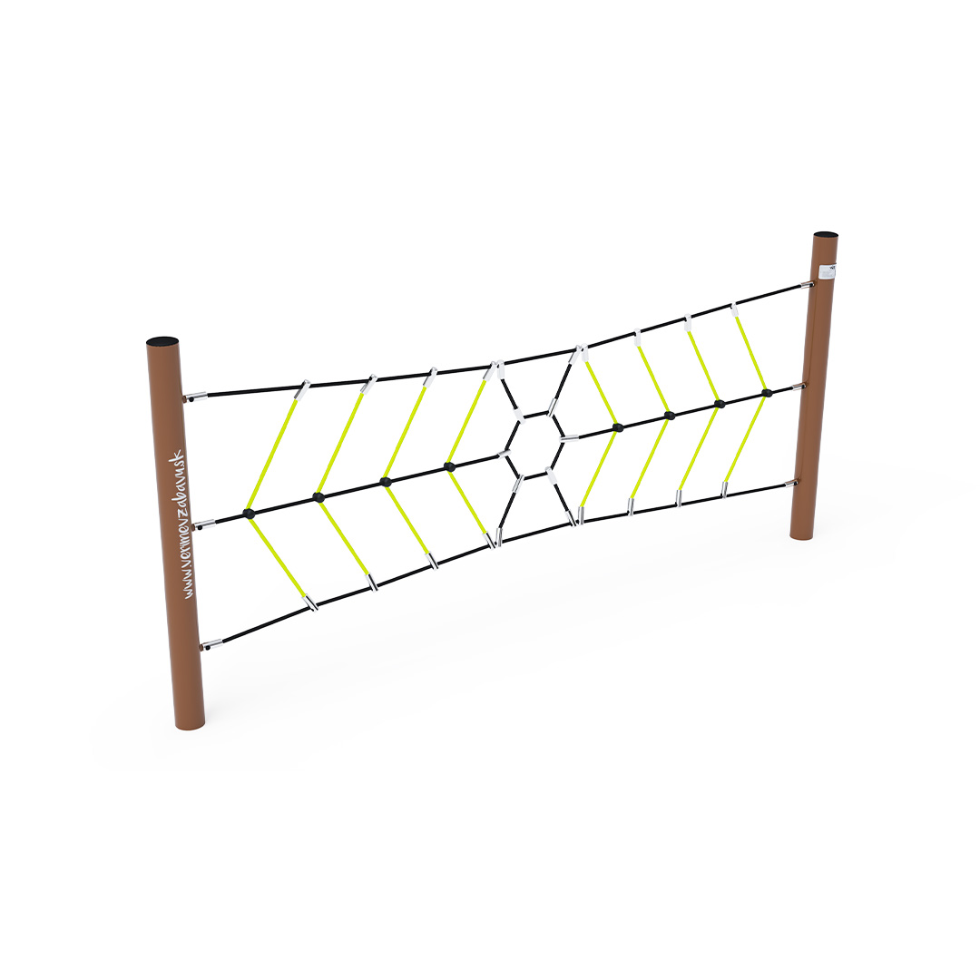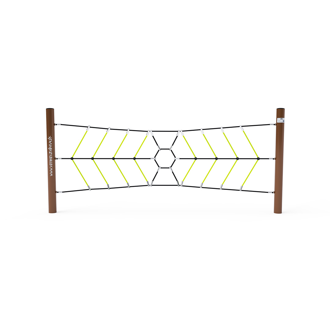 Az egyrészes ügyességfejlesztő majompálya tartószerkezete horganyzott és porszórt acélból, kötélrendszere pedig acélmagos poliészter kötélből készül. A poliészter szálakból készült acélmagos kötél magas szilárdsággal bír és ez által jobban ellenáll a mechanikai igénybevételnek. Maga a poliészter számos pozitív tulajdonsággal rendelkezik. Színtartó, ellenáll a mikroorganizmusoknak, az időjárási hatásoknak, (pl. eső után gyorsan szárad). Minden kötőelem rozsdamentes acélból készül és a fokozott tartósság és biztonság érdekében műanyag kupakkal van lezárva. Ezeknek az anyagoknak köszönhetően az eszköz minimális karbantartást igényel! A játékeszközt úgy terveztük, hogy a hosszú élettartam mellett a maximális biztonságot is garantálja!
