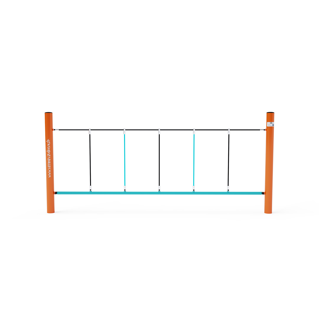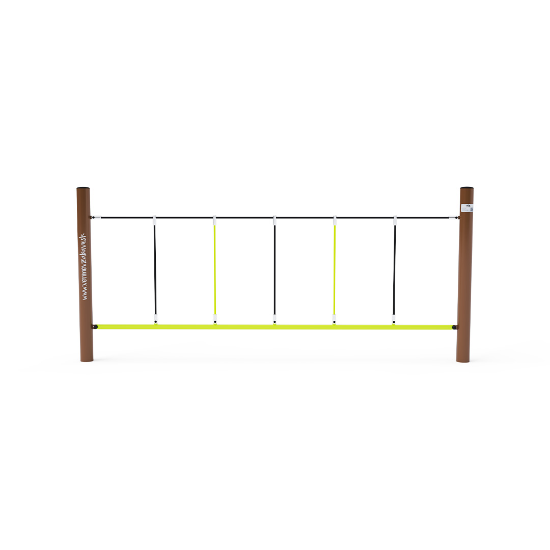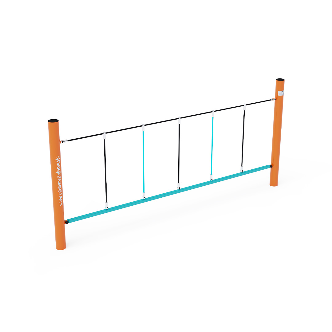 Az egyrészes ügyességfejlesztő majompálya tartószerkezete horganyzott és porszórt acélból, kötélrendszere pedig acélmagos poliészter kötélből készül. A poliészter szálakból készült acélmagos kötél magas szilárdsággal bír és ez által jobban ellenáll a mechanikai igénybevételnek. Maga a poliészter számos pozitív tulajdonsággal rendelkezik. Színtartó, ellenáll a mikroorganizmusoknak, az időjárási hatásoknak, (pl. eső után gyorsan szárad). Minden kötőelem rozsdamentes acélból készül és a fokozott tartósság és biztonság érdekében műanyag kupakkal van lezárva. Ezeknek az anyagoknak köszönhetően az eszköz minimális karbantartást igényel! A játékeszközt úgy terveztük, hogy a hosszú élettartam mellett a maximális biztonságot is garantálja!