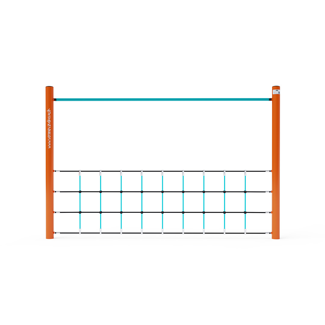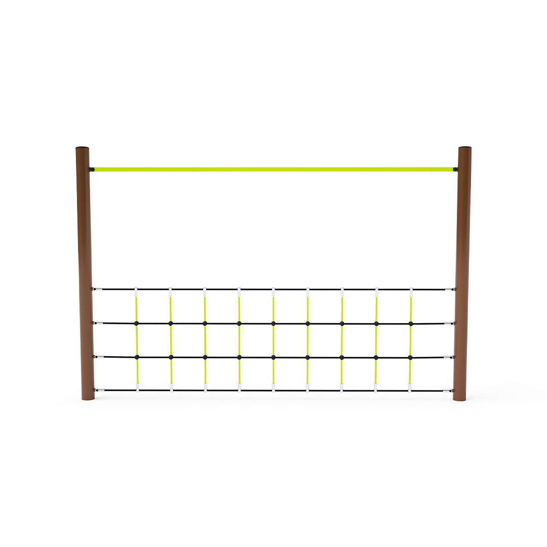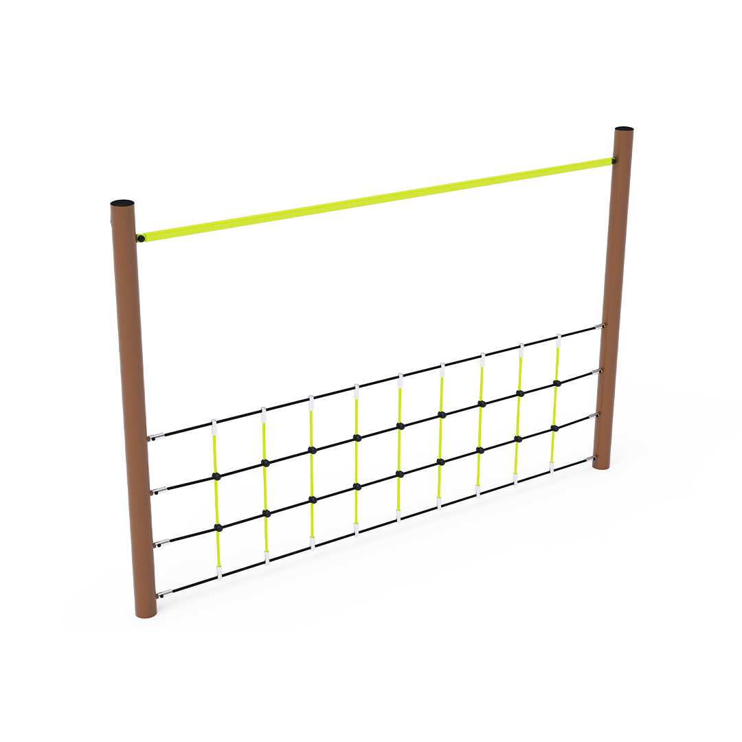 Az egyrészes ügyességfejlesztő majompálya tartószerkezete horganyzott és porszórt acélból, kötélrendszere pedig acélmagos poliészter kötélből készül. A poliészter szálakból készült acélmagos kötél magas szilárdsággal bír és ez által jobban ellenáll a mechanikai igénybevételnek. Maga a poliészter számos pozitív tulajdonsággal rendelkezik. Színtartó, ellenáll a mikroorganizmusoknak, az időjárási hatásoknak, (pl. eső után gyorsan szárad). Minden kötőelem rozsdamentes acélból készül és a fokozott tartósság és biztonság érdekében műanyag kupakkal van lezárva. Ezeknek az anyagoknak köszönhetően az eszköz minimális karbantartást igényel! A játékeszközt úgy terveztük, hogy a hosszú élettartam mellett a maximális biztonságot is garantálja!