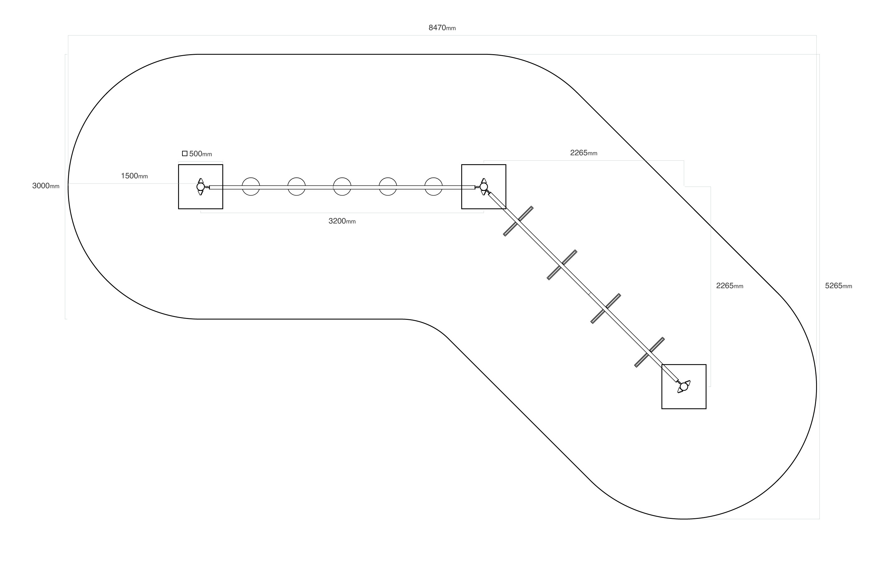 - Biztonsági zóna: 8,6 × 5,3 m