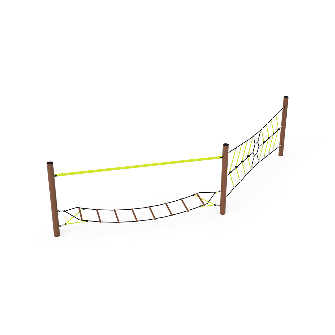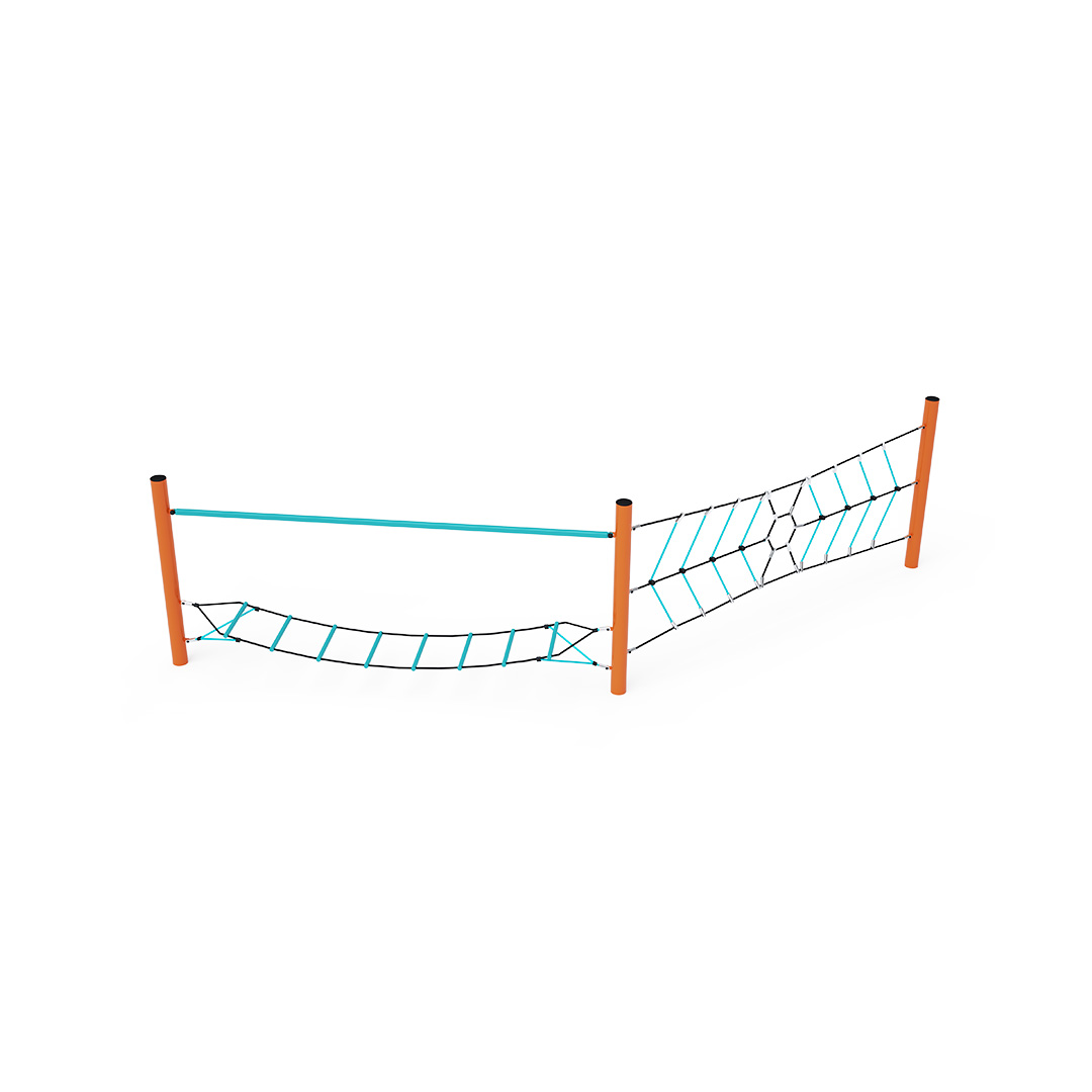 Két rész kombinálásával létrehozott majompálya. Az első rész egy függőleges kötélpókhálóból áll, amely próbára teszi azoknak a gyerekeknek a kézerejét, akik vállalkoznak erre a küldetésre. A vízszintesen "lógó" hálóból álló rész elsősorban a gyerekek szórakoztatását szolgálja, mivel ingatag. Egyáltalán nem könnyű az olyan fellépőkön lépkedni, amelyek oldalra dőlnek. A játékelem horganyzott acélból készült, kiváló minőségű kivitelben, az illesztések anyaga rozsdamentes acél, és műanyag fedéllel borították őket, hogy növeljék az illesztések biztonságát és tartósságát. A kötelek poliészterszálakból készülnek, amelyek egy központi szem köré vannak tekerve. Ez a fajta kötélszerkezet növeli a kötél szilárdságát és a mechanikai igénybevétellel szembeni ellenállását. Maga a poliészter ellenáll a mikroorganizmusoknak, az időjárás viszontagságainak, eső után gyorsan szárad, színtartó és nagy szilárdság jellemzi.