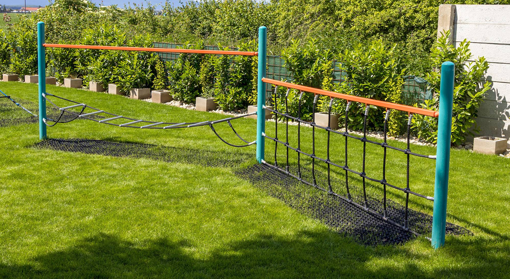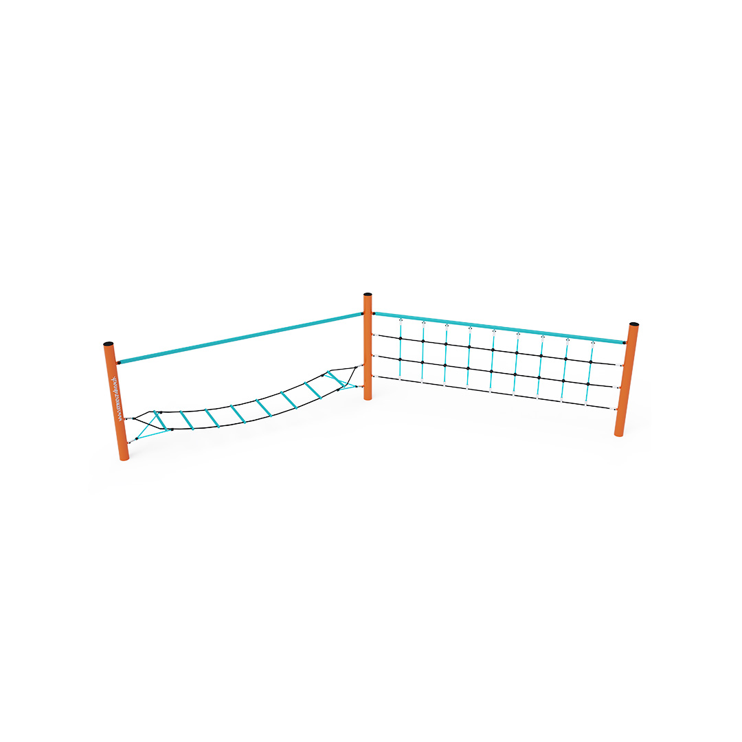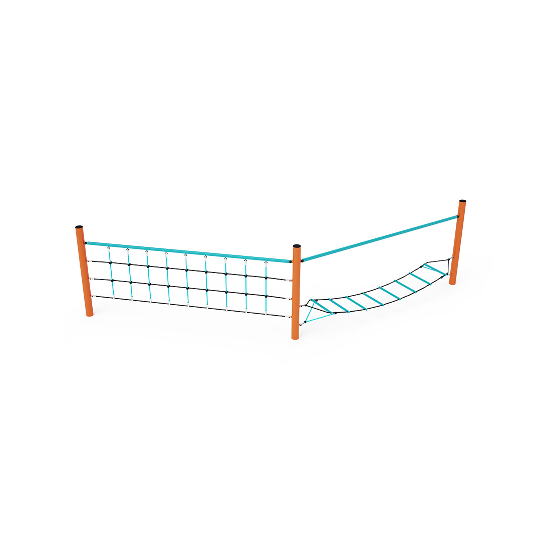 Két rész kombinálásával létrehozott majompálya. A vízszintesen "lógó" hálóból álló rész elsősorban a gyerekek szórakoztatását szolgálja, mivel ingatag. Egyáltalán nem könnyű az olyan fellépőkön lépkedni, amelyek oldalra dőlnek. A második rész egy függőleges kötélhálóból áll, amely próbára teszi azoknak a gyerekeknek a kézerejét, akik vállalkoznak erre a küldetésre. A játékelem horganyzott acélból készült, kiváló minőségű kivitelben, az illesztések anyaga rozsdamentes acél, és műanyag fedéllel borították őket, hogy növeljék az illesztések biztonságát és tartósságát. A kötelek poliészterszálakból készülnek, amelyek egy központi szem köré vannak tekerve. Ez a fajta kötélszerkezet növeli a kötél szilárdságát és a mechanikai igénybevétellel szembeni ellenállását. Maga a poliészter ellenáll a mikroorganizmusoknak, az időjárás viszontagságainak, eső után gyorsan szárad, színtartó és nagy szilárdság jellemzi.