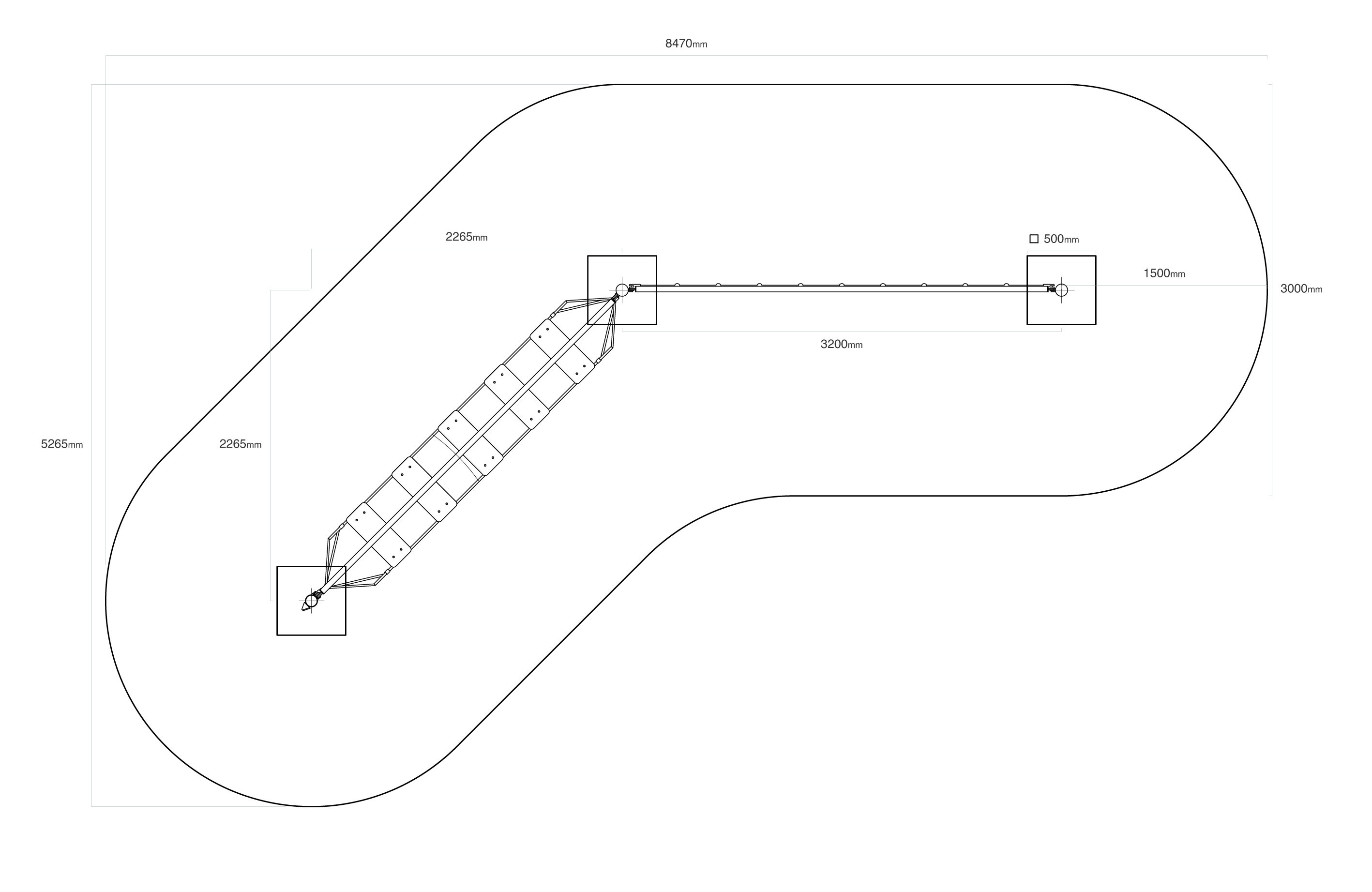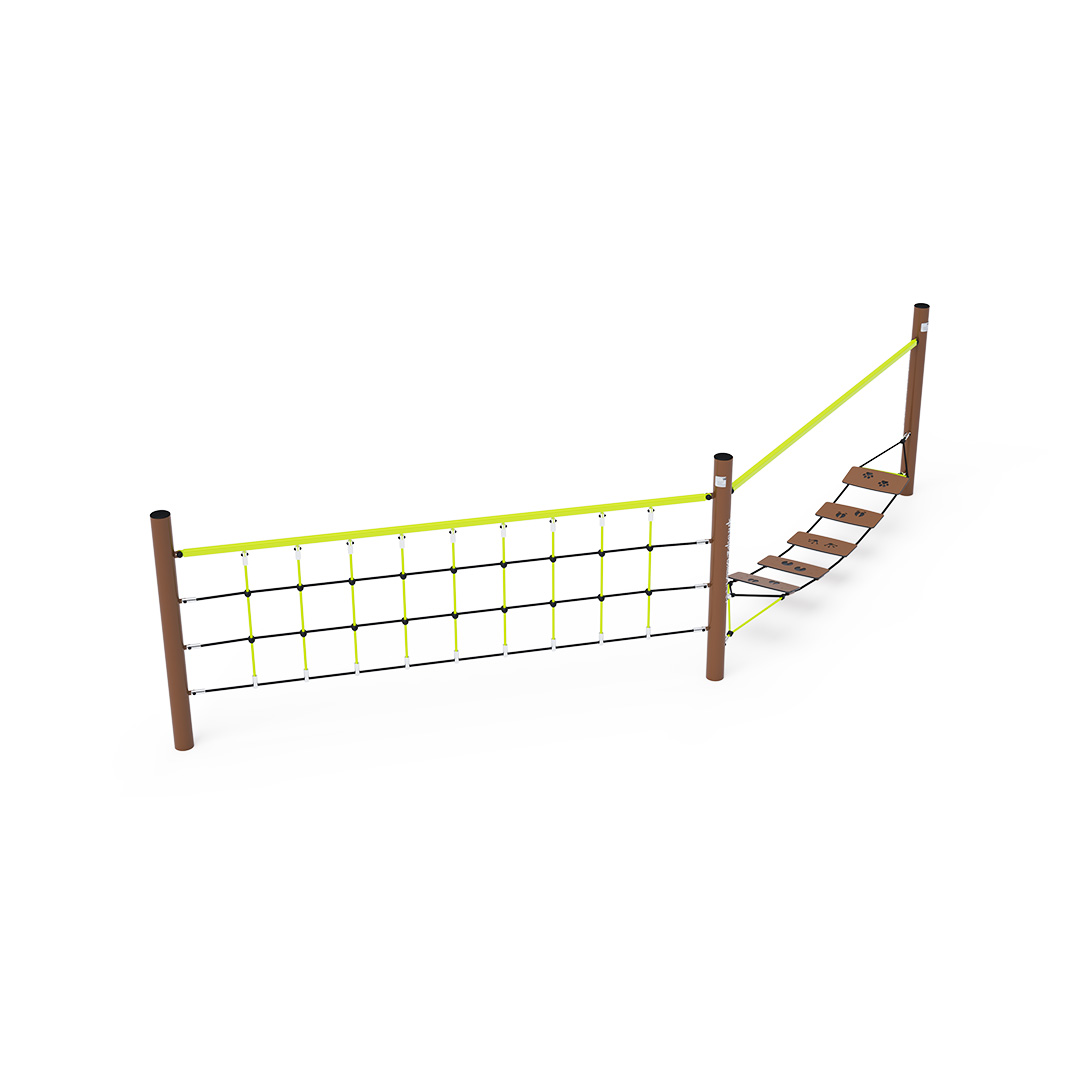 Két rész kombinálásával létrehozott majompálya. Az első rész HPL-ből készült egyensúlyi fellépőkből áll, amelyek nem csak a gyerekek egyensúlyérzékét edzik, hanem azt is megtanítják nekik, hogy milyen lábnyomokat hagynak a különböző állatok. A függőleges kötélhálóból álló második rész minden olyan gyermek kezének erejét próbára teszi, amelyik vállalja ezt a küldetést. A játékelem horganyzott acélból készül, kiváló minőségű kivitelben, az illesztések anyaga rozsdamentes acél, és műanyag fedelekkel vannak letakarva a nagyobb biztonság és az illesztések tartóssága érdekében. A kötelek poliészterszálakból készülnek, amelyek a középpont köré vannak tekerve. Ez a fajta kötélszerkezet növeli a kötelek szilárdságát és ellenállóságát a mechanikai igénybevétellel szemben. Maga a poliészter számos pozitív tulajdonsággal rendelkezik: ellenálló a mikroorganizmusokkal és az időjárás viszontagságaival szemben, eső után gyorsan szárad, színtartó és nagyfokú szilárdság jellemzi.