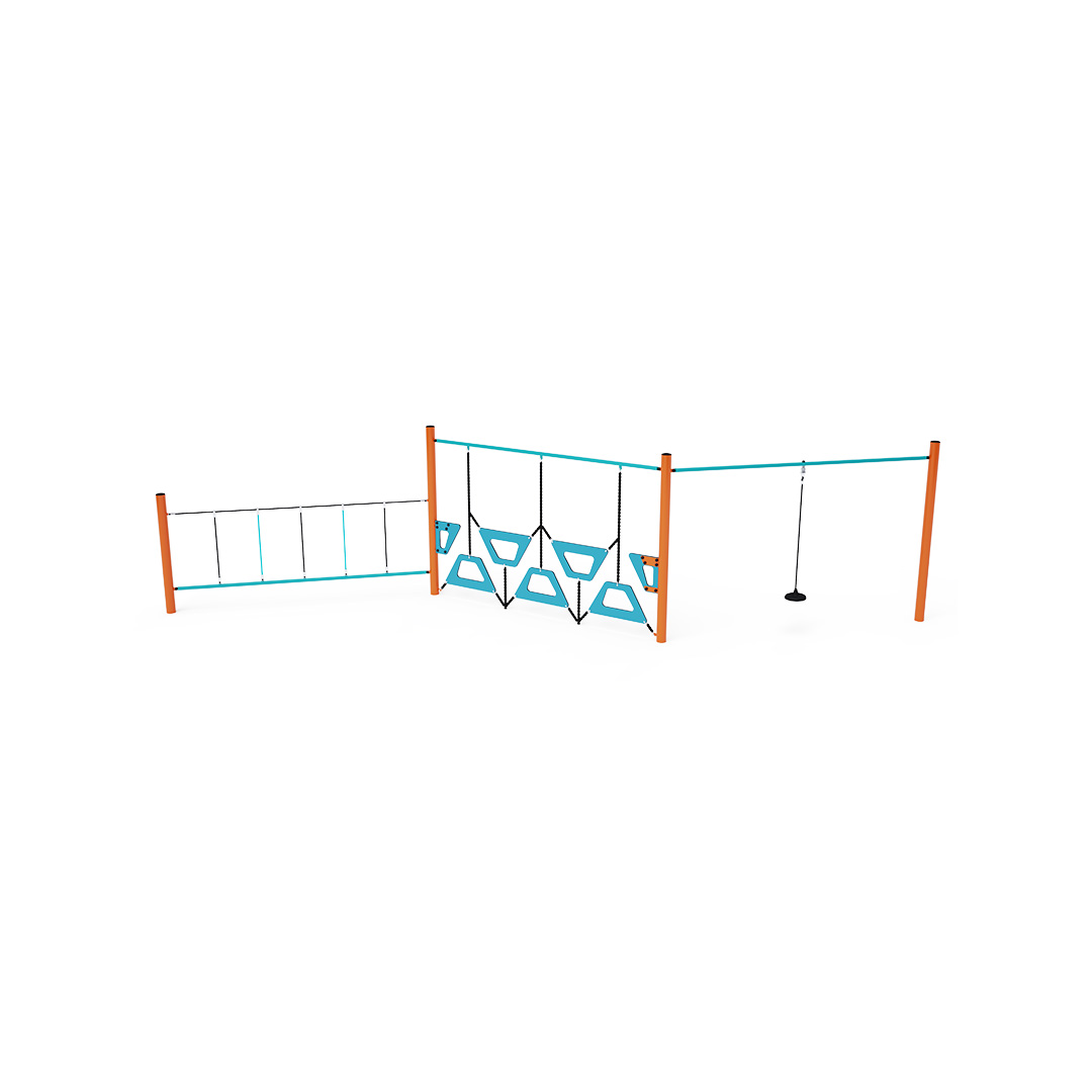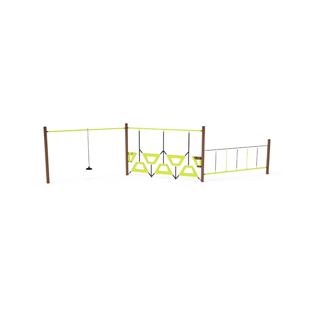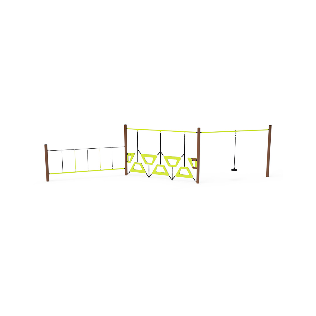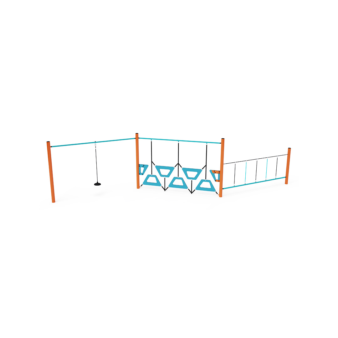 Három rész kombinálásával létrehozott majompálya. Az első rész egy függőkötéllel, egy egyszerű, de sokoldalú elem. A második rész szabadon lógó lábtartókból áll, amelyek egymás mellett lógnak. A harmadik rész alkalmas az oldalsó húzásra. Bár a gyermek egy szilárd rúdon áll, a kötélbe kell kapaszkodnia, ami már nem olyan erős. Ennek a játékelemnek a leküzdése nemcsak szórakoztató, hanem erőfeszítést is igényel. A játékelem kiváló minőségű felületkezelésű tűzihorganyzott acélból készült, az illesztések rozsdamentes acélból készültek, és műanyag kupakkal vannak bevonva az illesztések biztonságának és tartósságának növelése érdekében. A kötelek poliészter szálakból készülnek, amelyek a közepük köré vannak tekercselve. A kötélnek ez a konstrukciója növeli a szilárdságát és a mechanikai igénybevétellel szembeni ellenállását.