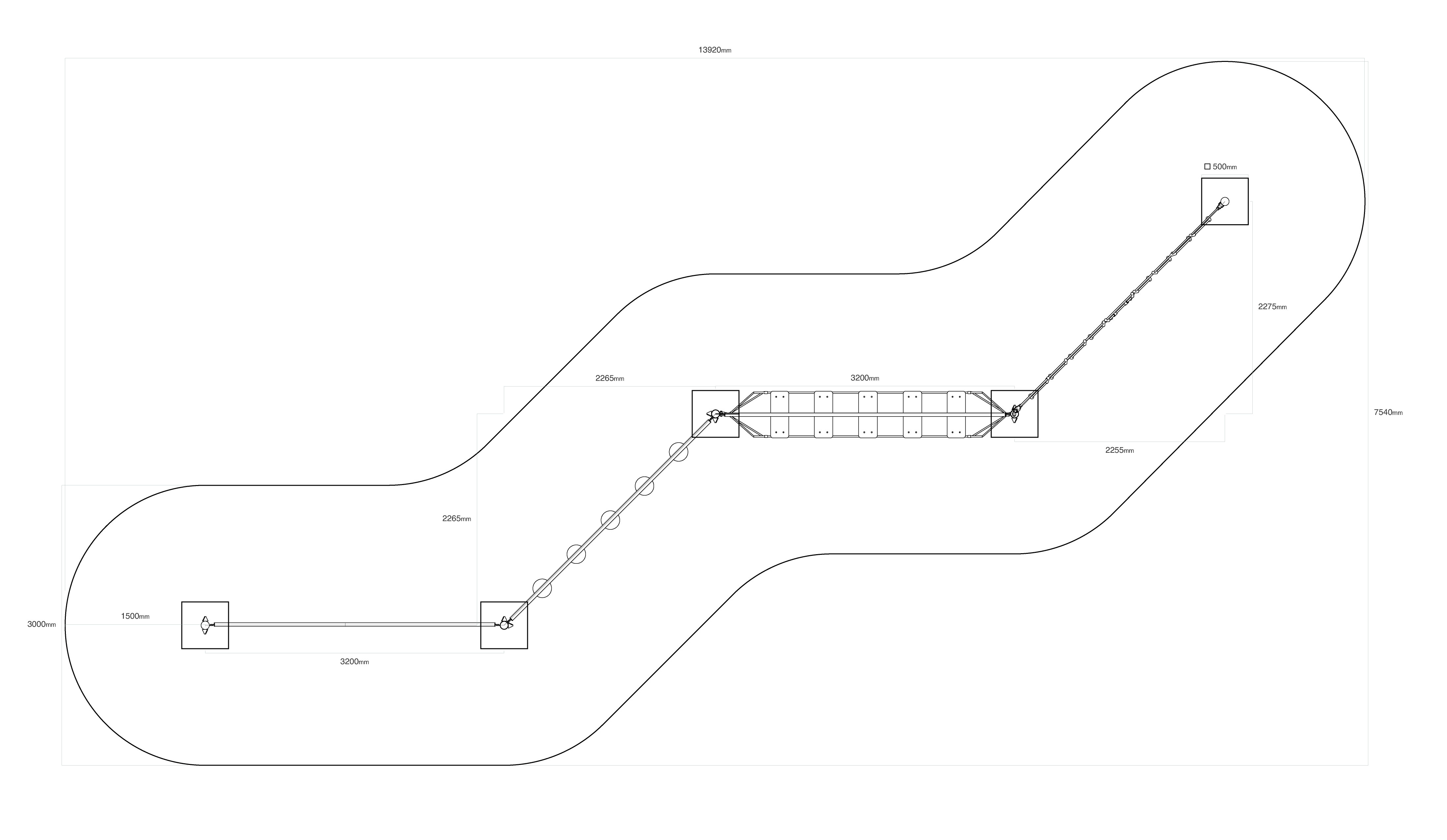 - Biztonsági zóna: 13,9 × 7,5 m