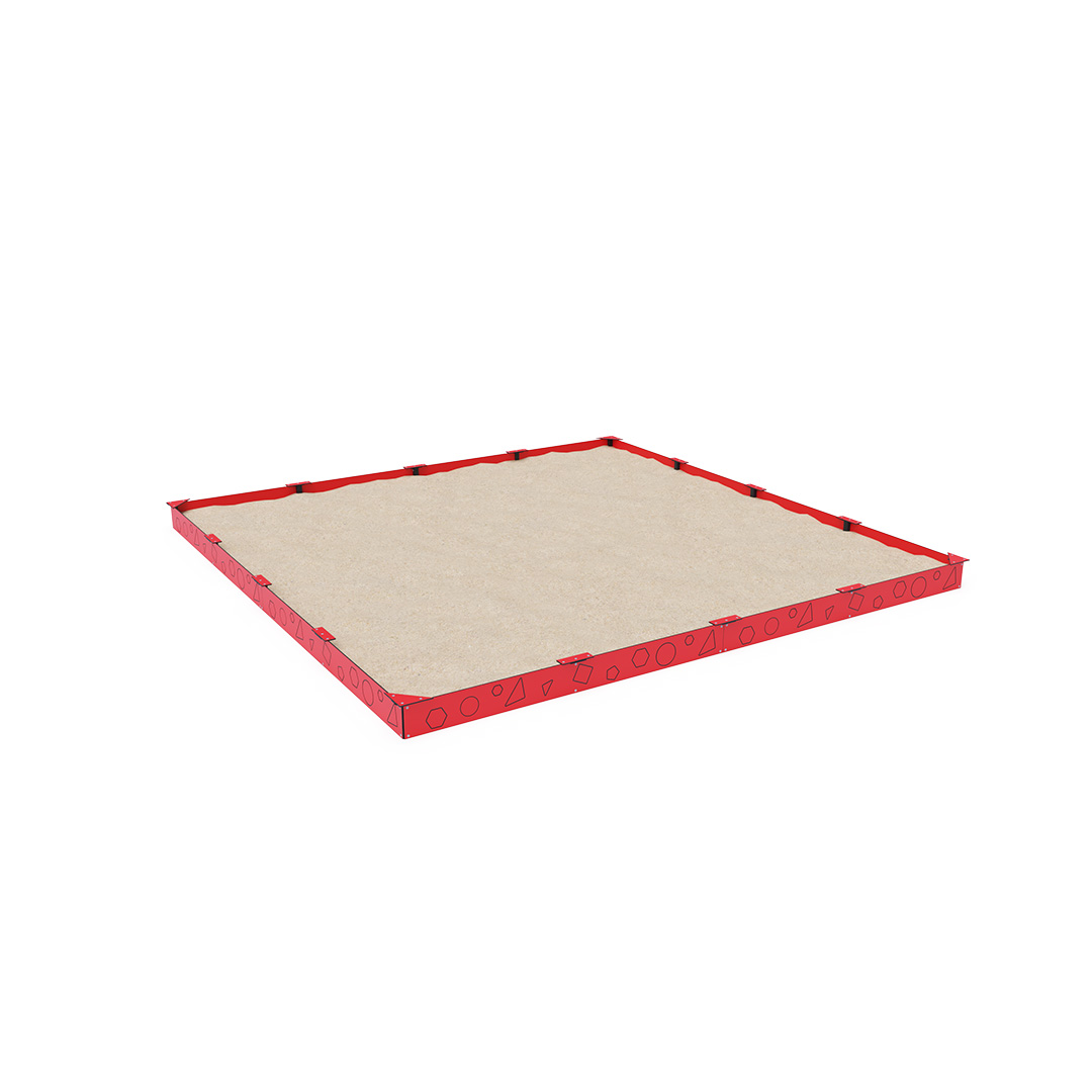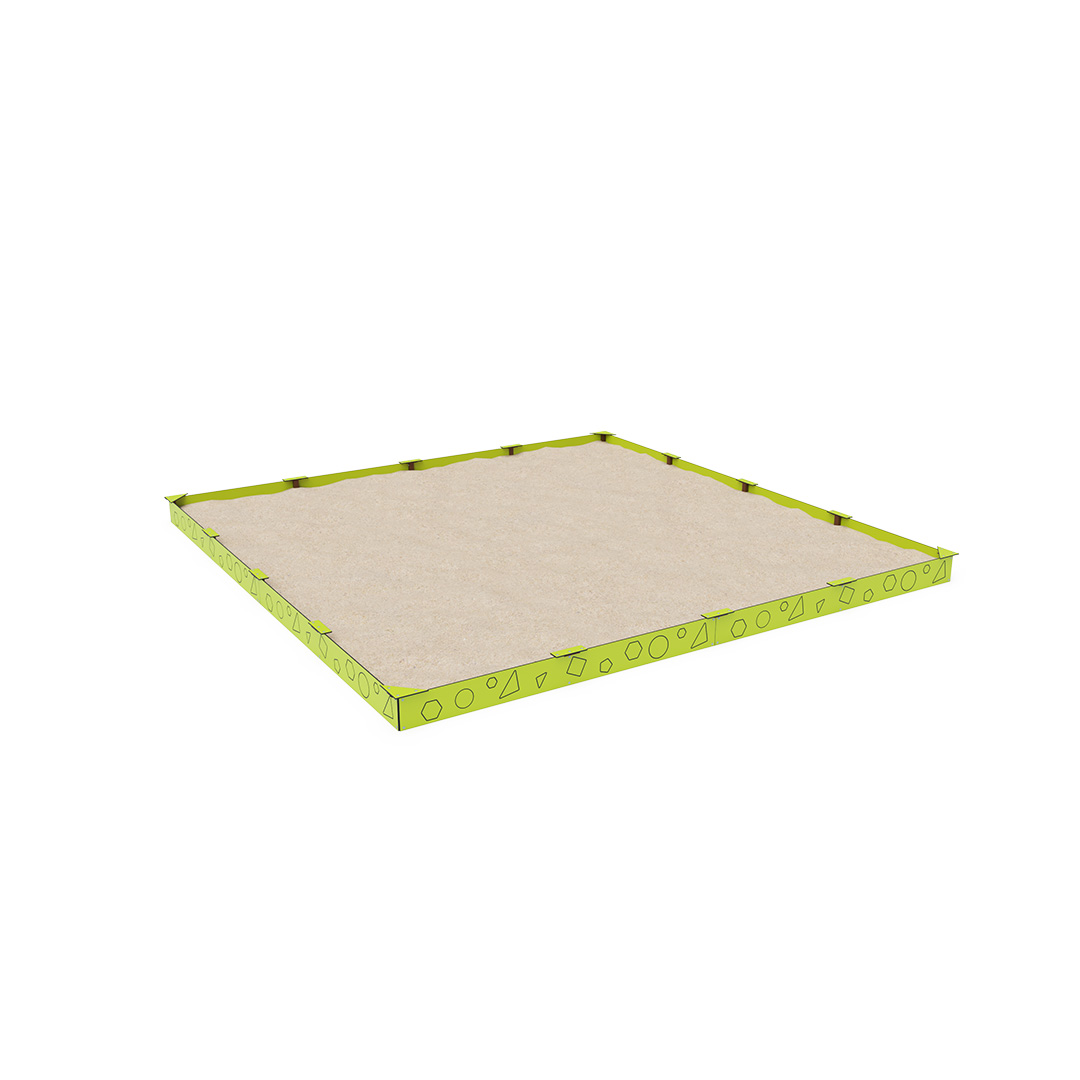 A geometriai alakzatokat ábrázoló ülőkékkel felszerelt 6x6 méteres homokozó szerkezete horganyzott és porszórt acélból, kötőelemei rozsdamentes acélból, ülőkéi és lapjai pedig HPL jelölésű magas nyomású laminált kompaktlemezből készülnek. A magas nyomású HPL lemez törhetetlen, nem mérgező, újrahasznosítható, továbbá vegyszer- és UV álló. A használt anyagoknak köszönhetően az eszköz minimális karbantartást igényel! A játékeszközt úgy terveztük, hogy a hosszú élettartam mellett a maximális biztonságot is garantálja!