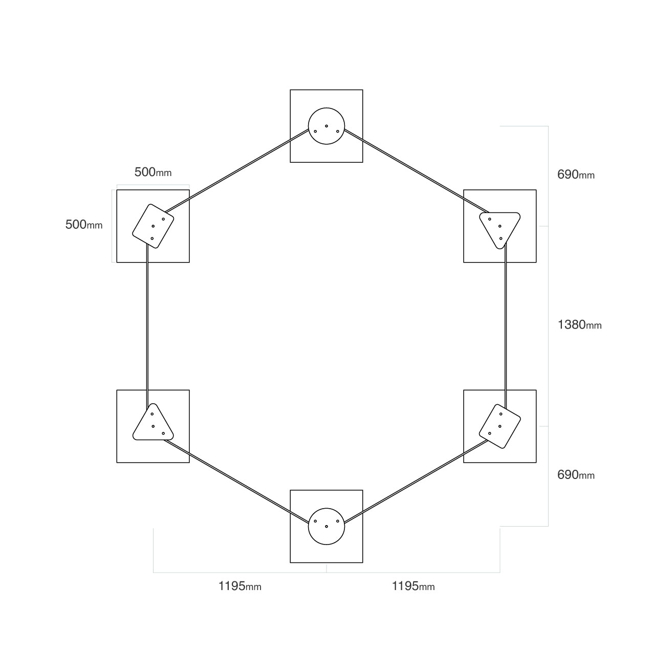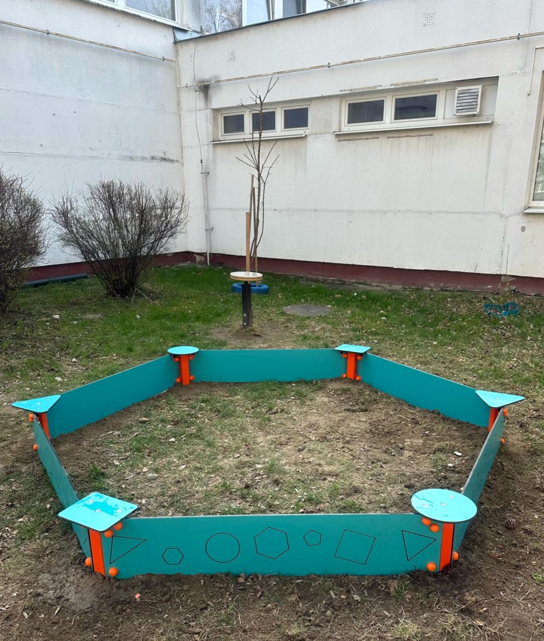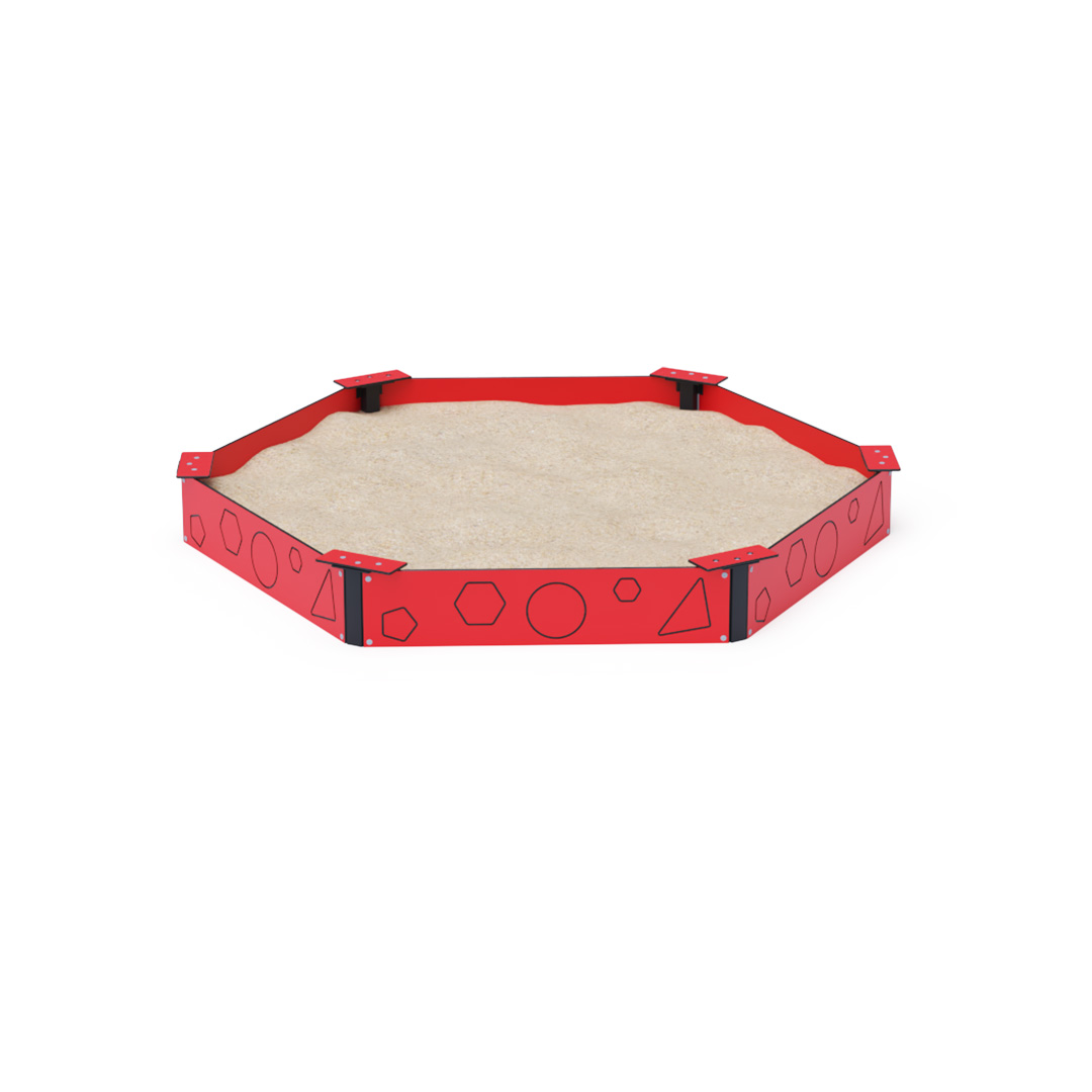 A geometriai alakzatokat ábrázoló ülőkékkel felszerelt hatszög alakú homokozó szerkezete horganyzott és porszórt acélból, kötőelemei rozsdamentes acélból, ülőkéi és lapjai pedig HPL jelölésű magas nyomású laminált kompaktlemezből készülnek. A magas nyomású HPL lemez törhetetlen, nem mérgező, újrahasznosítható, továbbá vegyszer- és UV álló. A használt anyagoknak köszönhetően az eszköz minimális karbantartást igényel! A játékeszközt úgy terveztük, hogy a hosszú élettartam mellett a maximális biztonságot is garantálja!