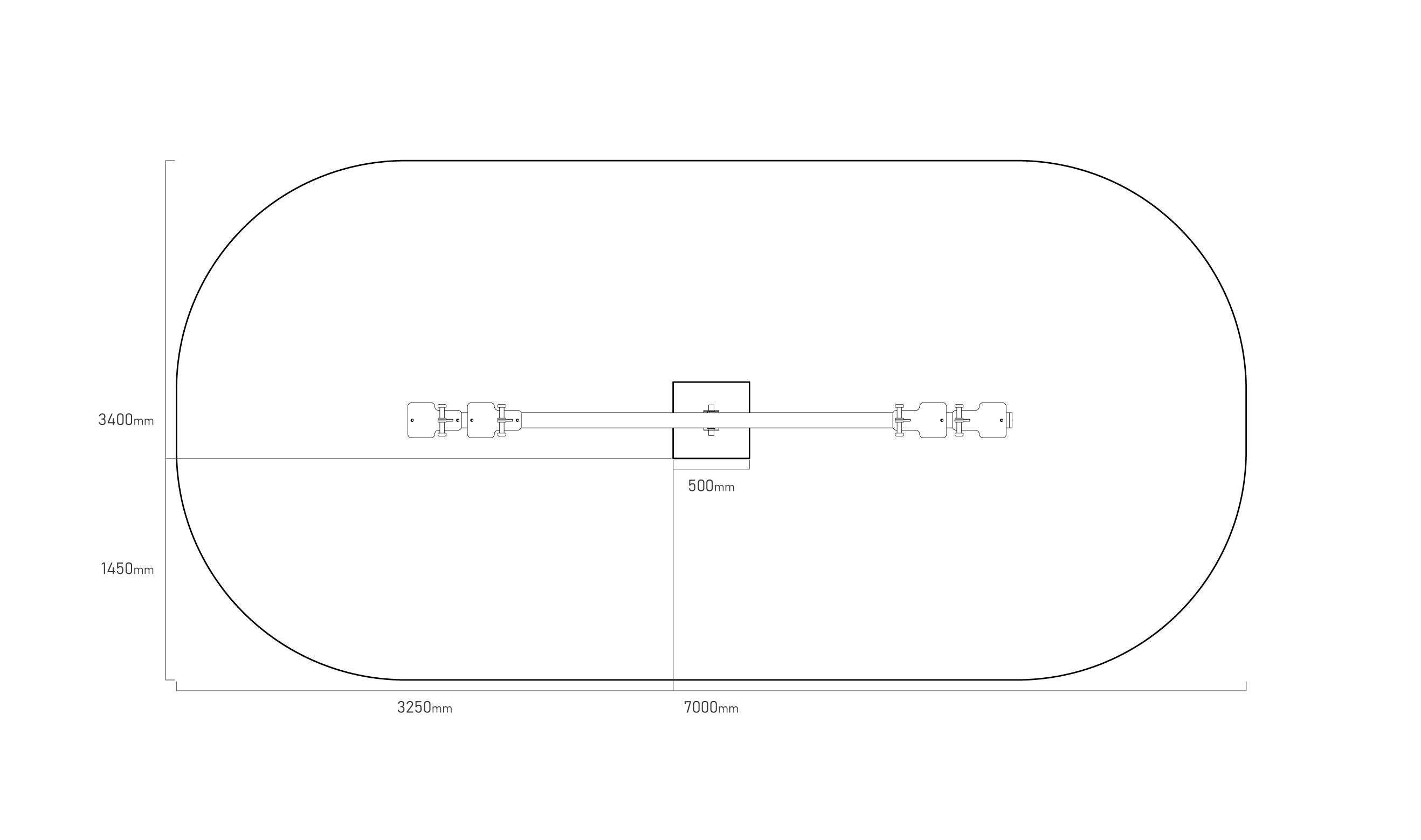 - Biztonsági zóna: 3,4 x 7,0 m