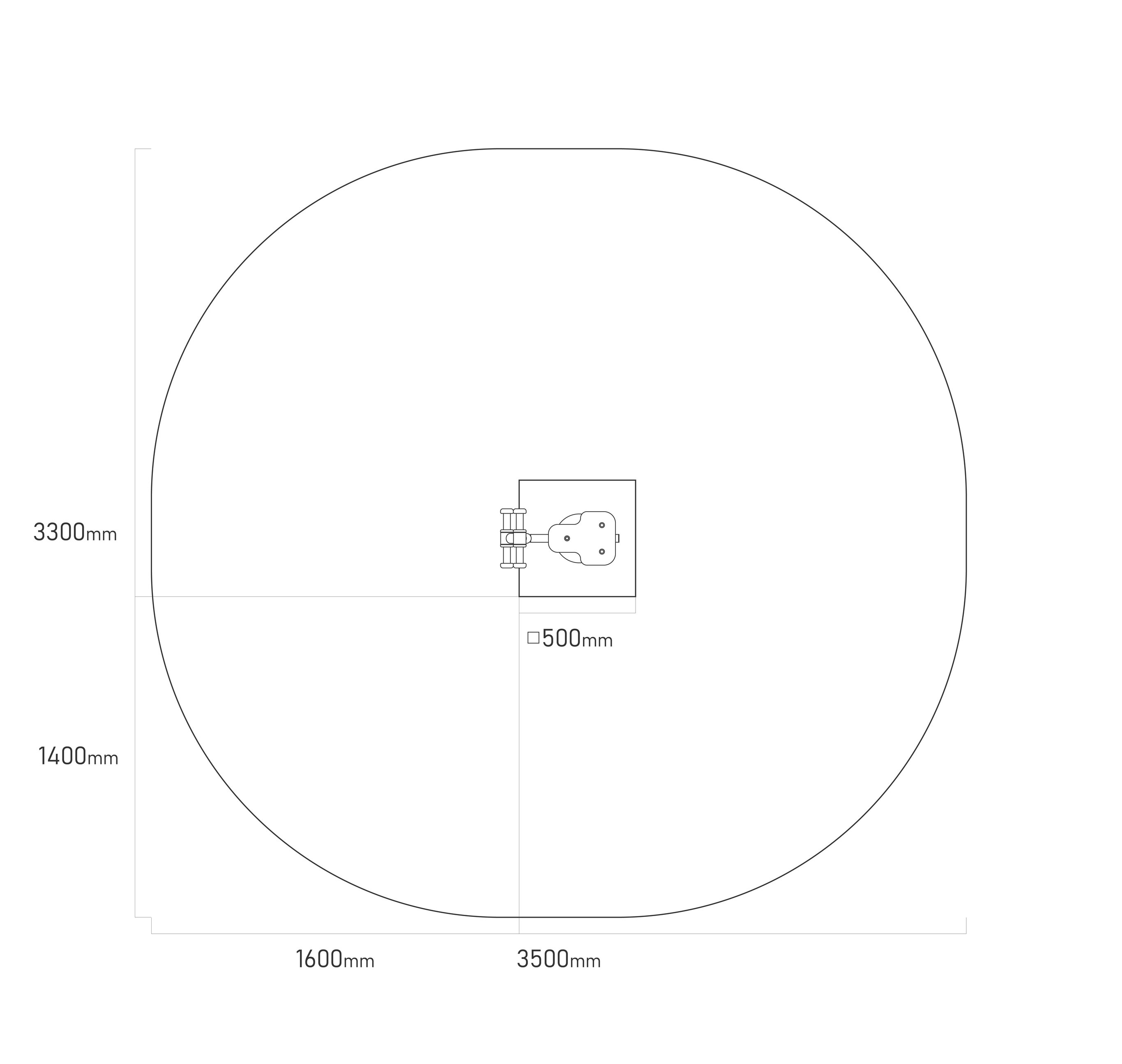 - Biztonsági zóna: 3,5 x 3,3 m