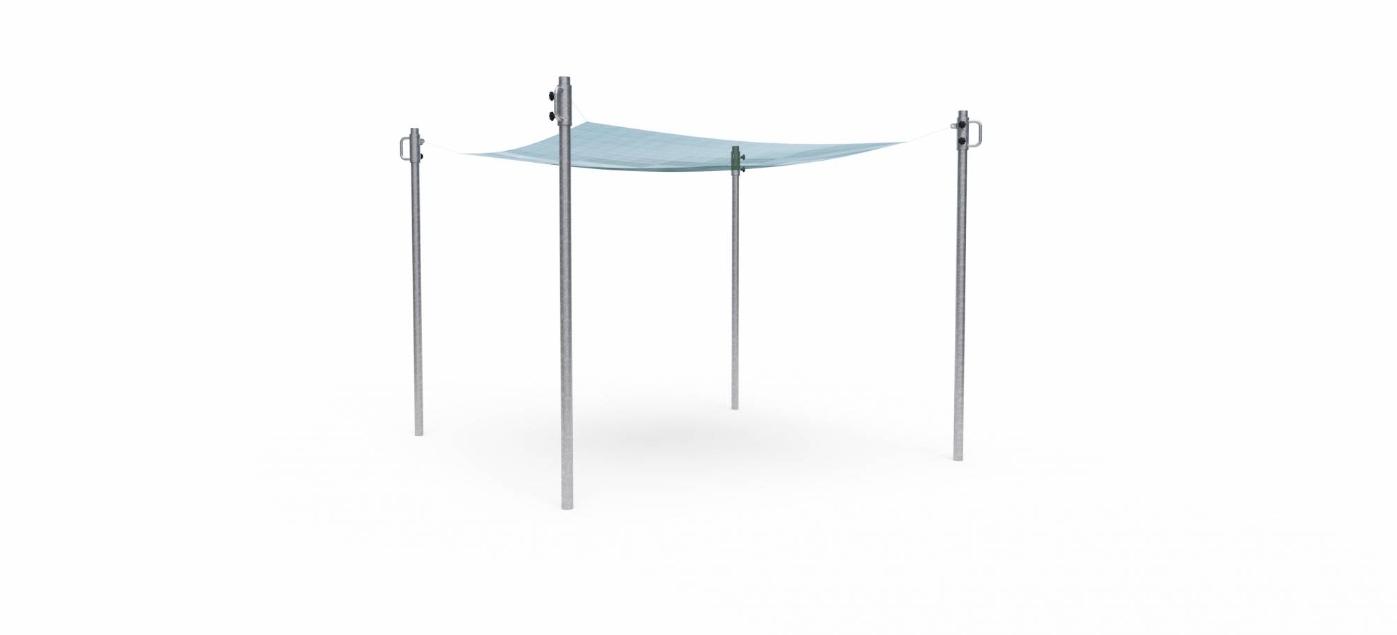 a földre, ahol takaróvitorlaként védi a homokozót az állatoktól és a durva szennyeződésektől. A tartószerkezet tűzihorganyzott acélból készült. A vitorla poliészter hálóból készült, amely ellenáll az UV-sugárzásnak. A csatlakozó anyag rozsdamentes acélból készült.