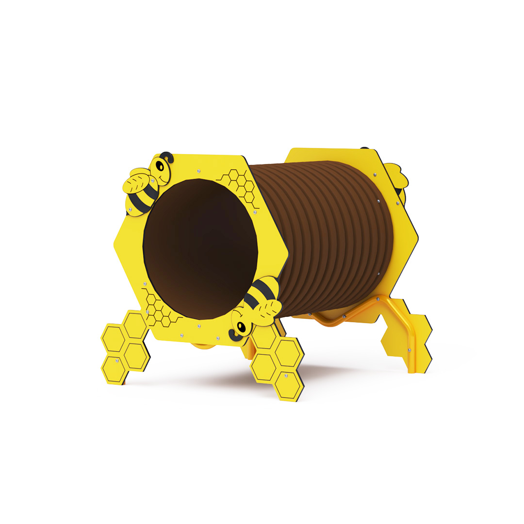 A méhkast ábrázoló alagút UV álló PVC-U csőből, tartó szerkezete horganyzott és porszórt acélból, grafikai lapjai pedig HPL jelölésű magas nyomású laminált kompaktlemezből készül. A magas nyomású HPL lemez törhetetlen, nem mérgező, újrahasznosítható, továbbá vegyszer- és UV-álló, így nem áll fenn annak a veszélye, hogy a gyermekek megsérülnek a játszás közben. Ezeknek az anyagoknak köszönhetően az eszköz minimális karbantartást igényel! A játékeszközt úgy terveztük, hogy a hosszú élettartam mellett a maximális biztonságot is garantálja! Az alagút a kisebb gyermekek körében népszerű játékeszköz.