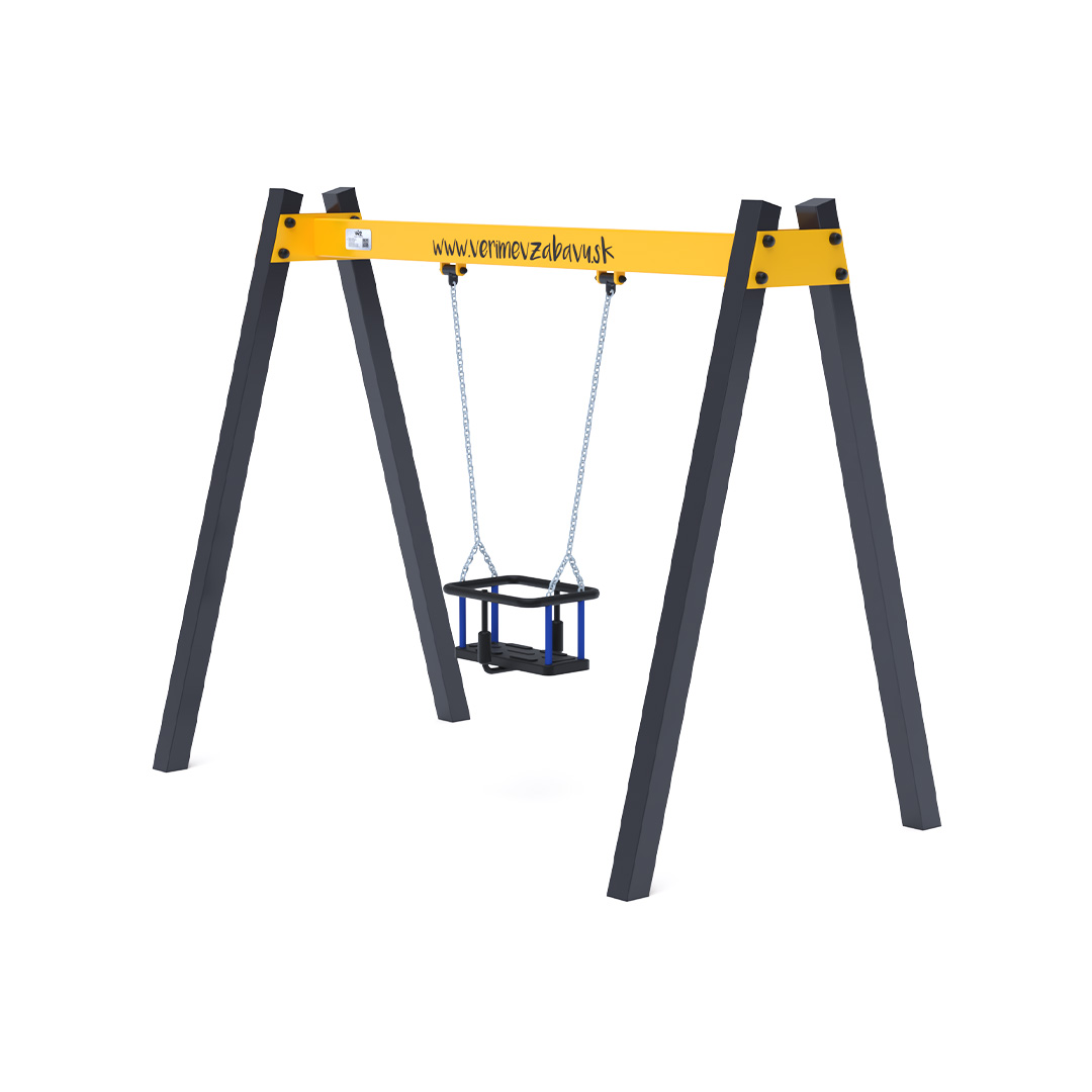 Az alumínium betétes babaülőkével felszerelt egyrészes lengőhinta tartó szerkezete horganyzott és porszórt acélból, kötőelemei pedig rozsdamentes acélból készülnek. Lengőhintáinkhoz egyedileg megtervezett csapágyas hintacsuklókat gyártunk. A használt anyagoknak köszönhetően az eszköz minimális karbantartást igényel! A játékeszközt úgy terveztük, hogy a hosszú élettartam mellett a maximális biztonságot is garantálja!