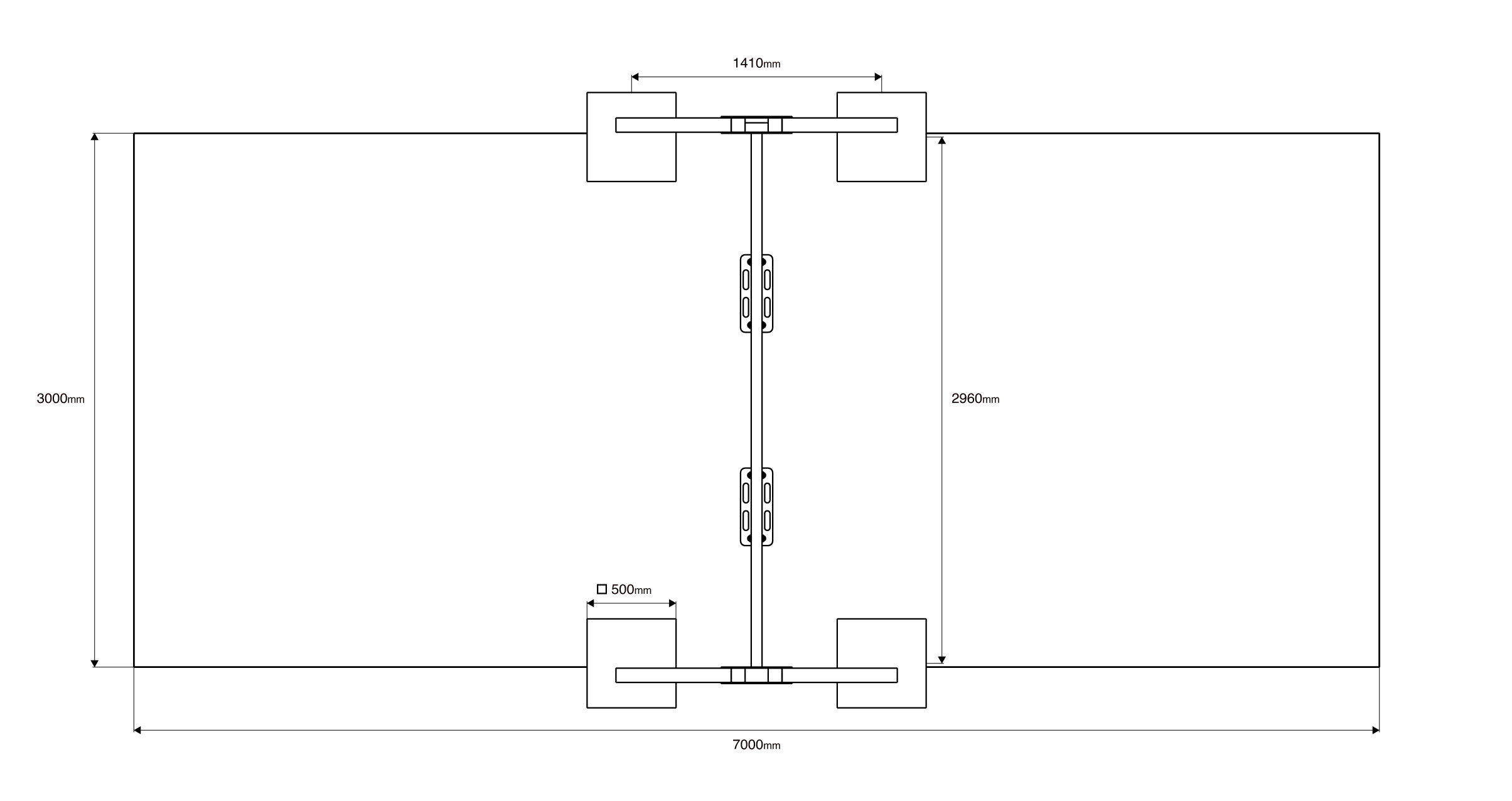 - Biztonsági zóna: 7,0 x 3,1 m