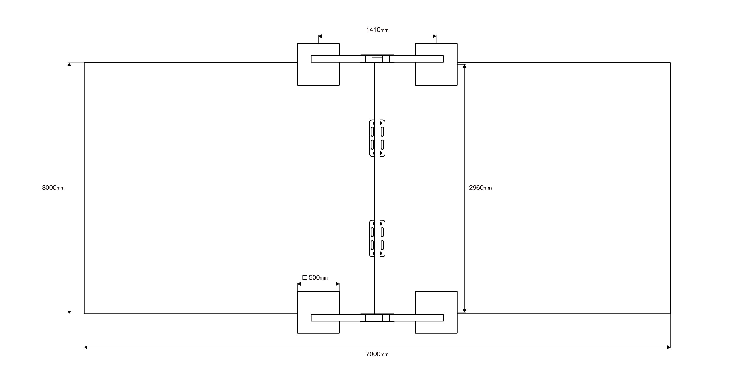 - Biztonsági zóna: 7,0 x 3,1 m