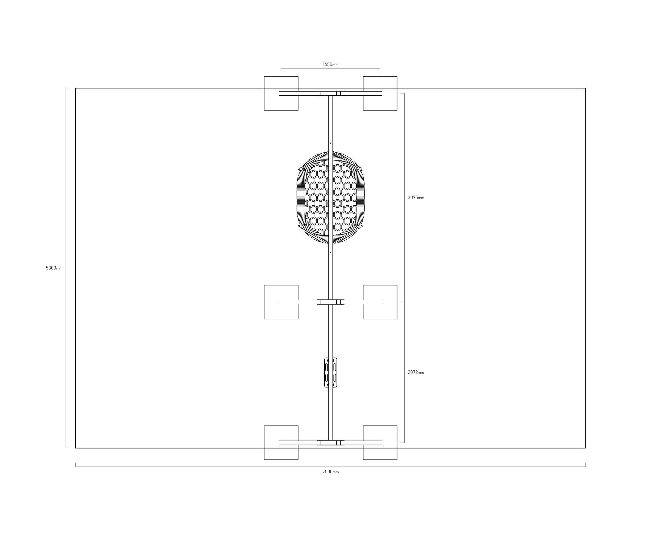 - Biztonsági zóna: 7,5 x 5,2 m