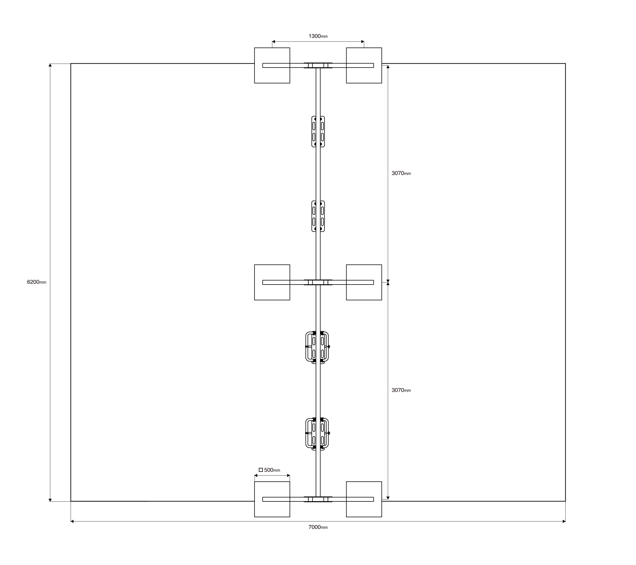 - Biztonsági zóna: 7,0 x 6,2 m