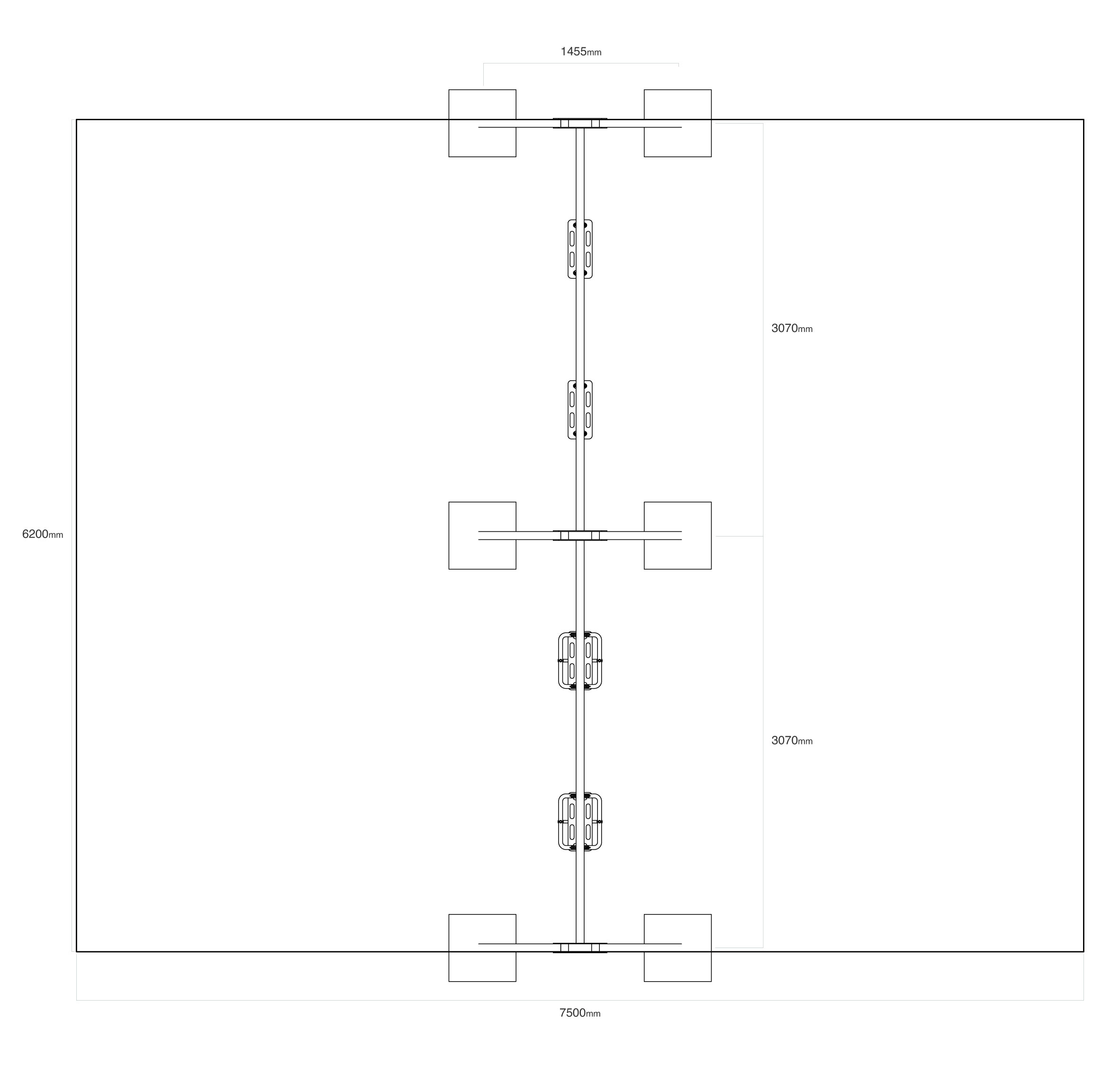 - Biztonsági zóna: 7,5 x 6,2 m