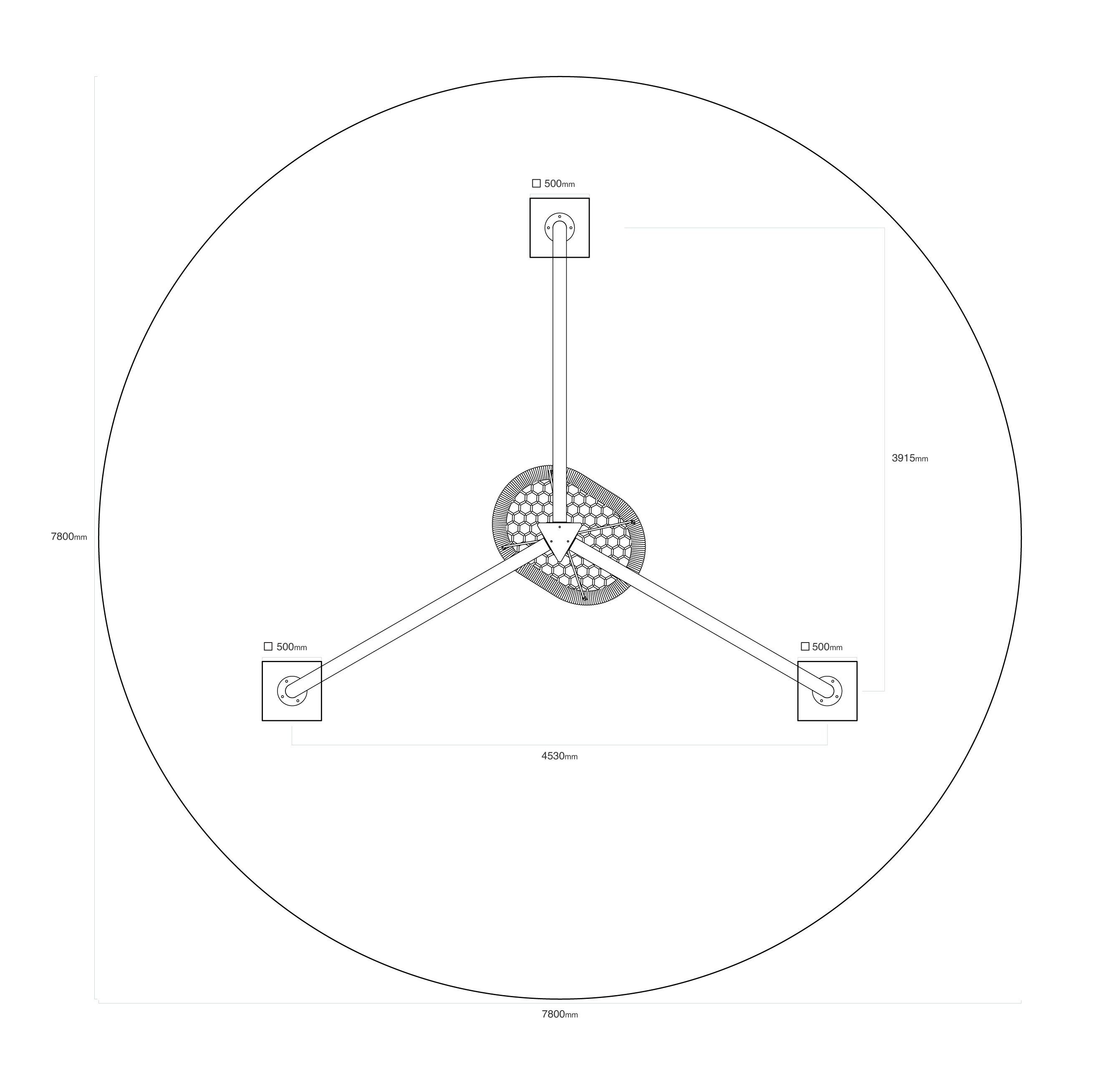 - Biztonsági zóna: 7,8 m átmérő