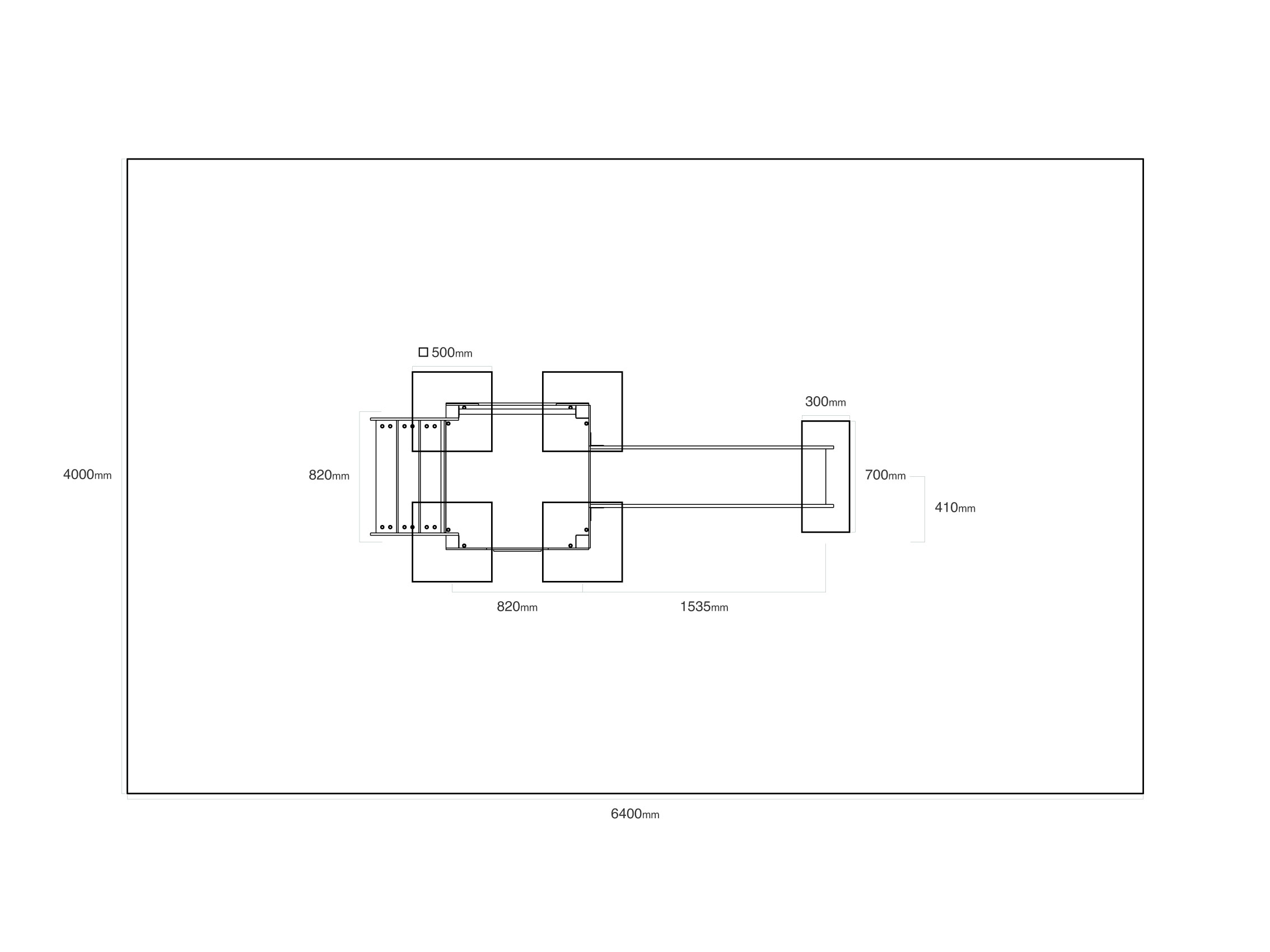 - Biztonsági zóna: 4,0 × 6,4 m