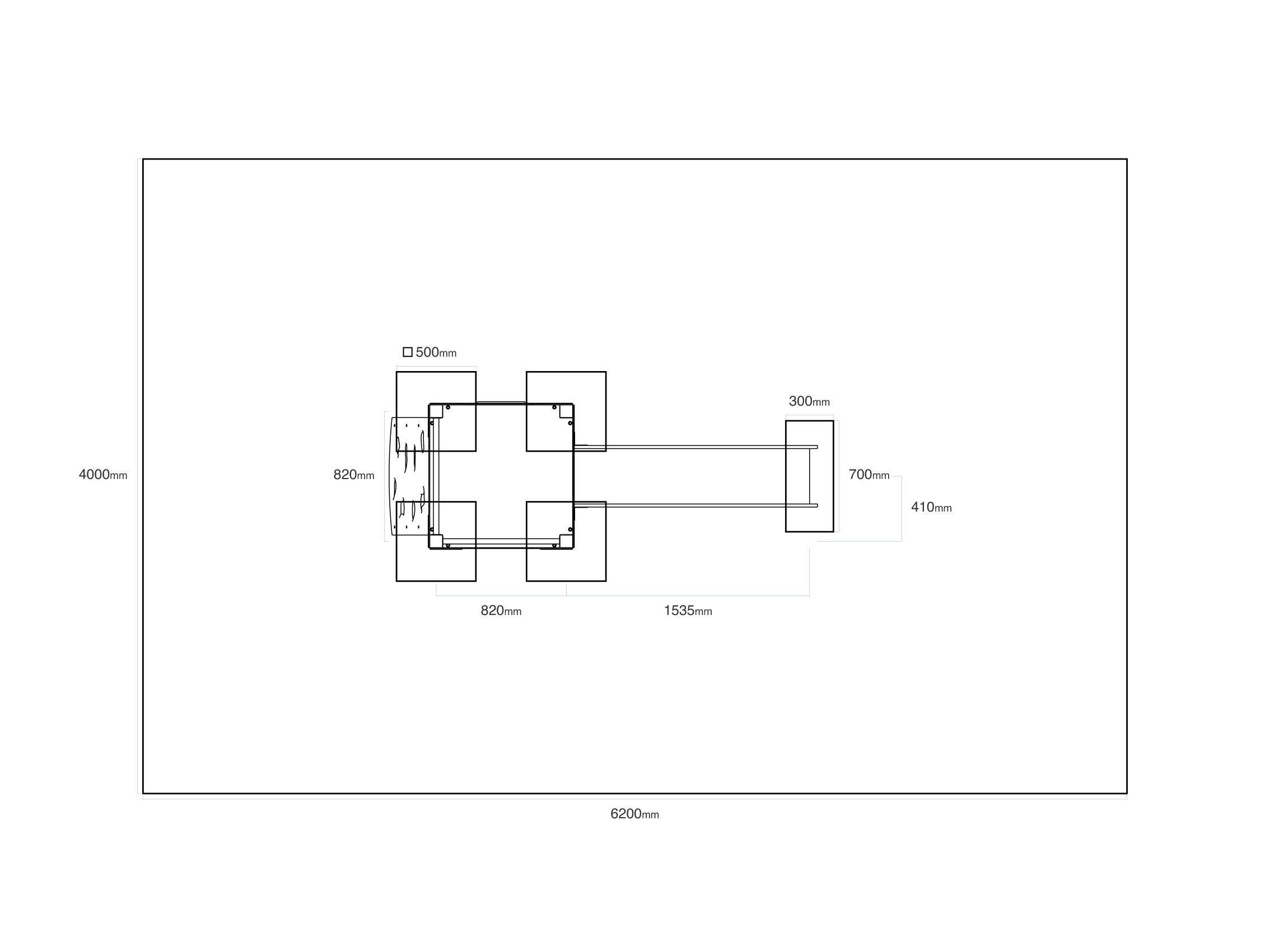 - Biztonsági zóna: 4,0 × 6,2 m
