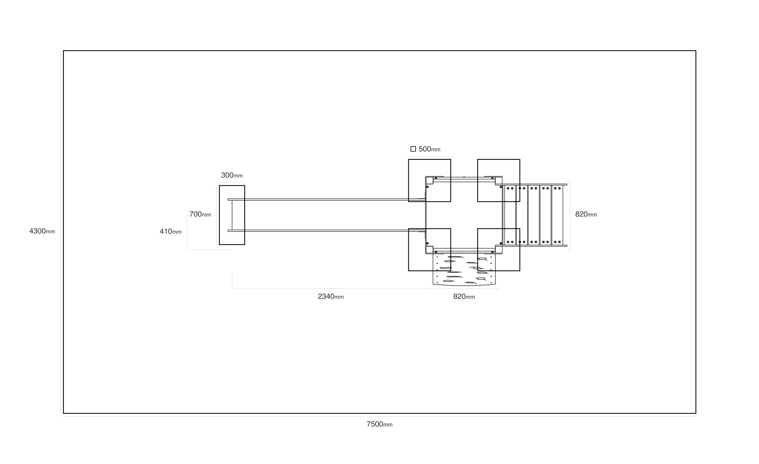 - Biztonsági zóna: 4,3 × 7,5 m