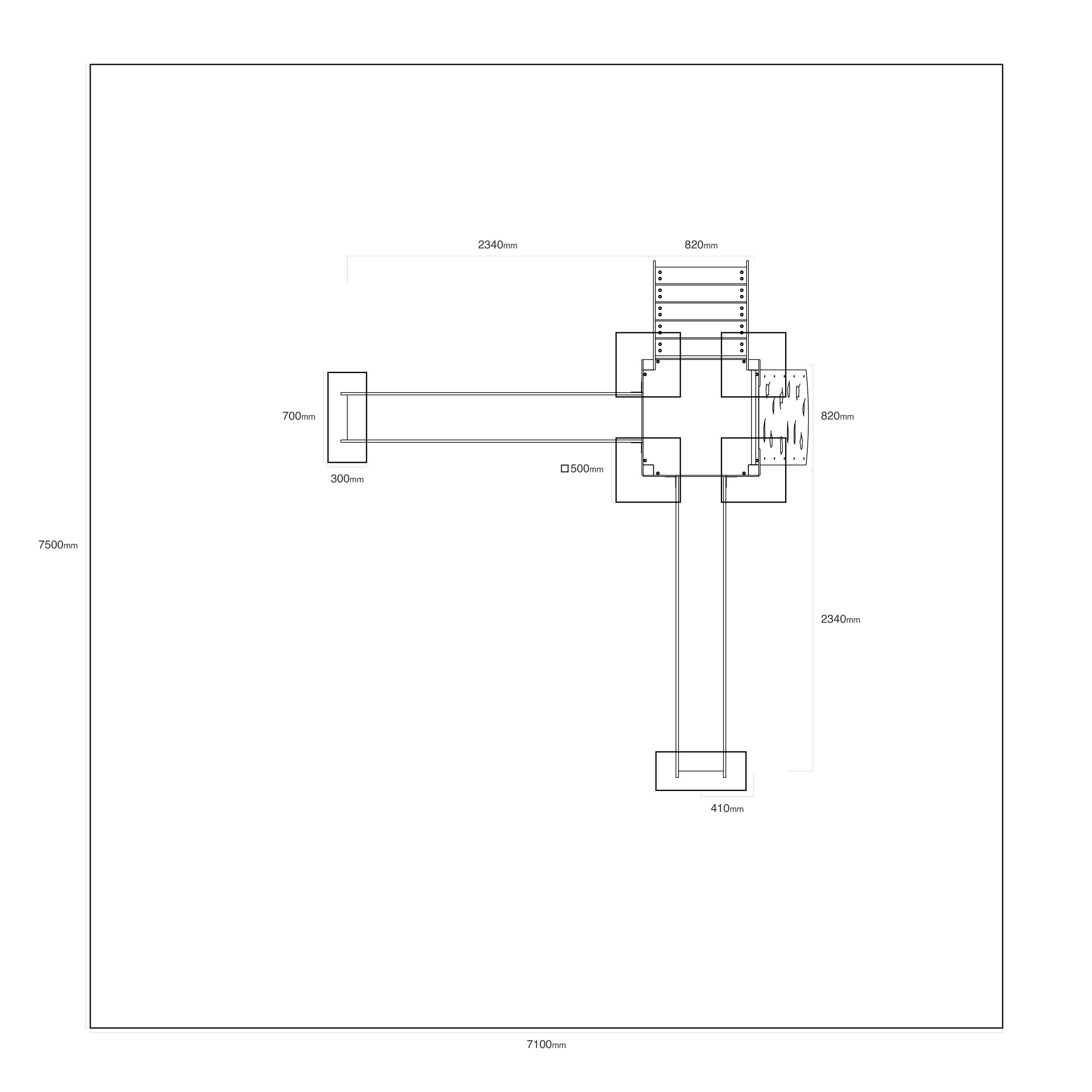 - Biztonsági zóna: 7,1 × 7,5 m