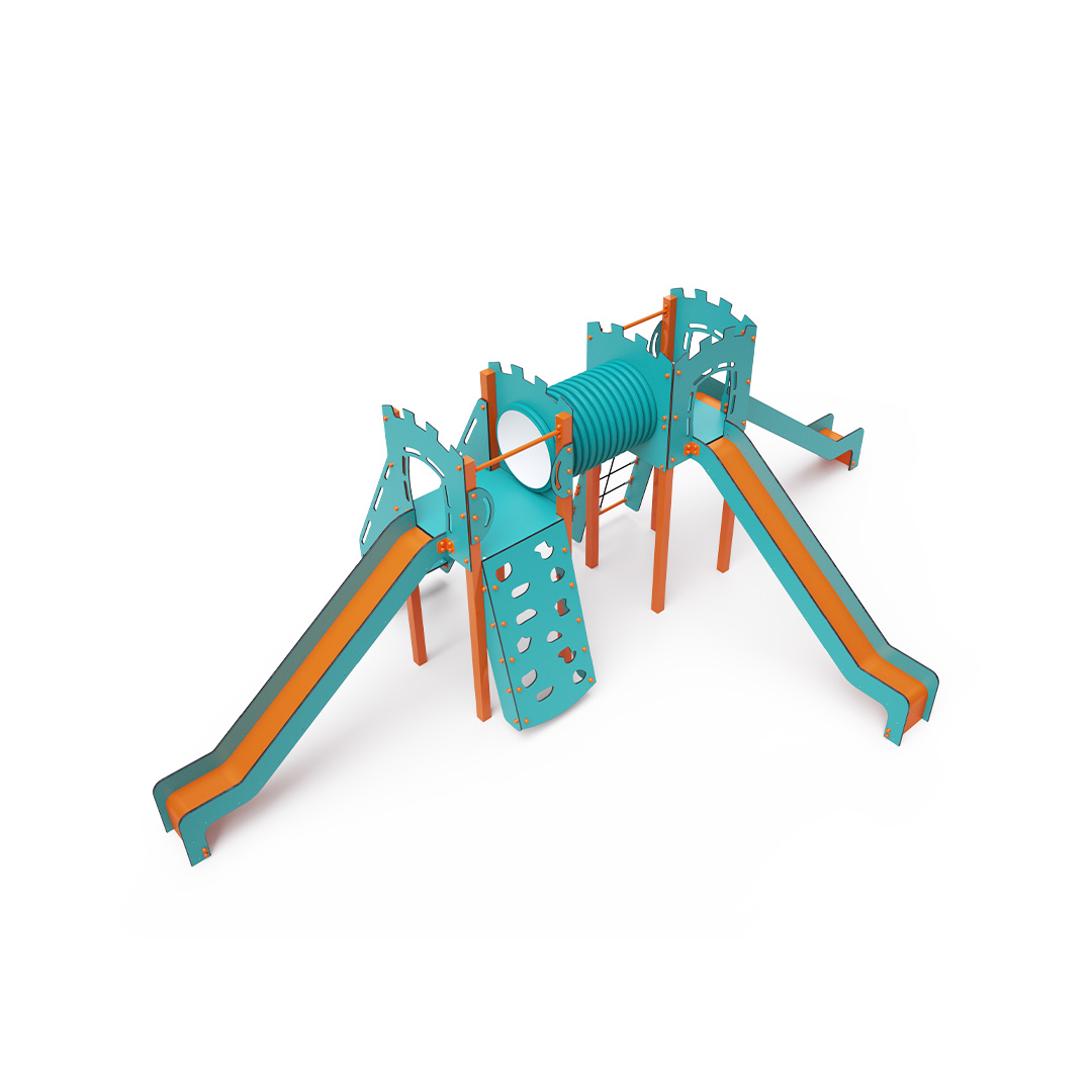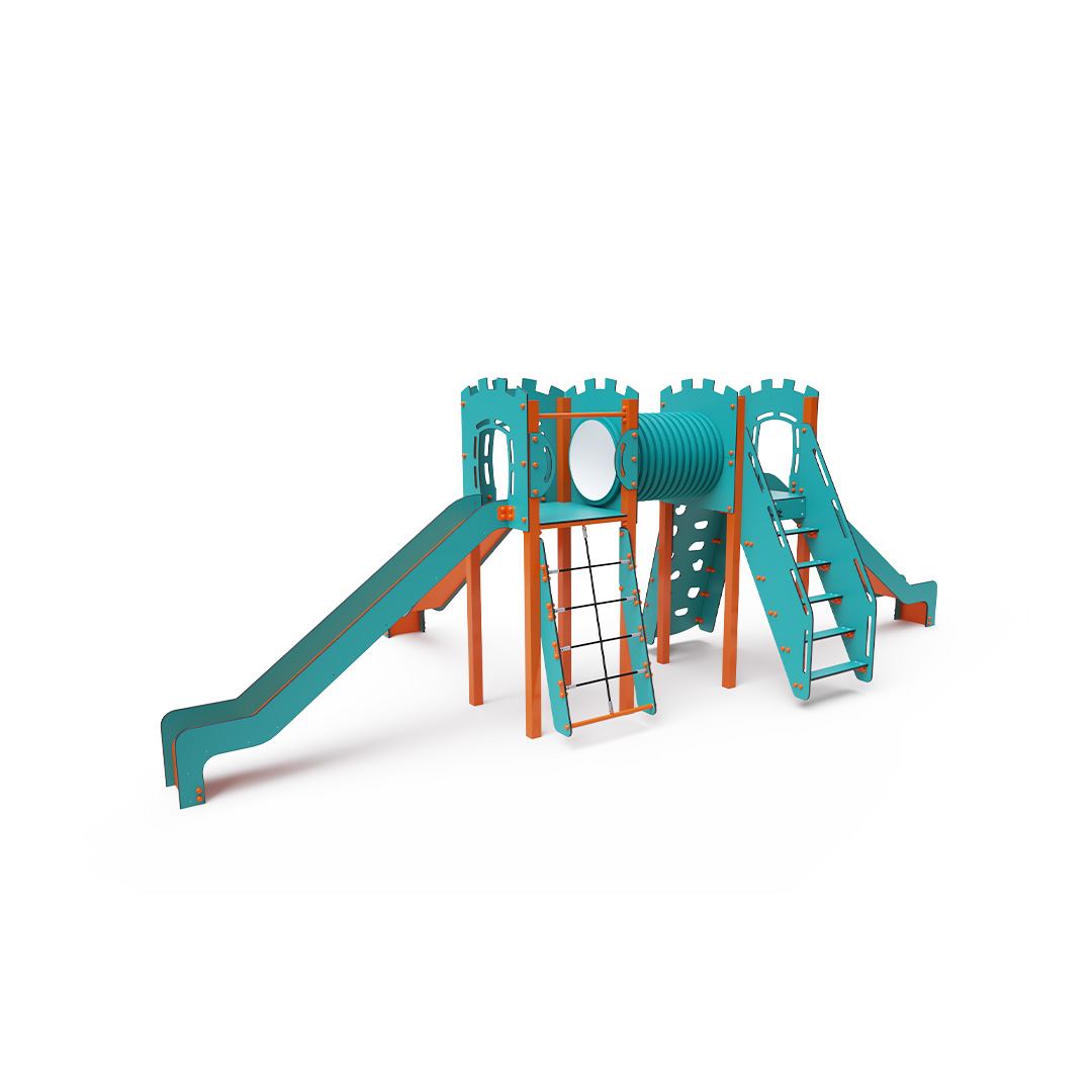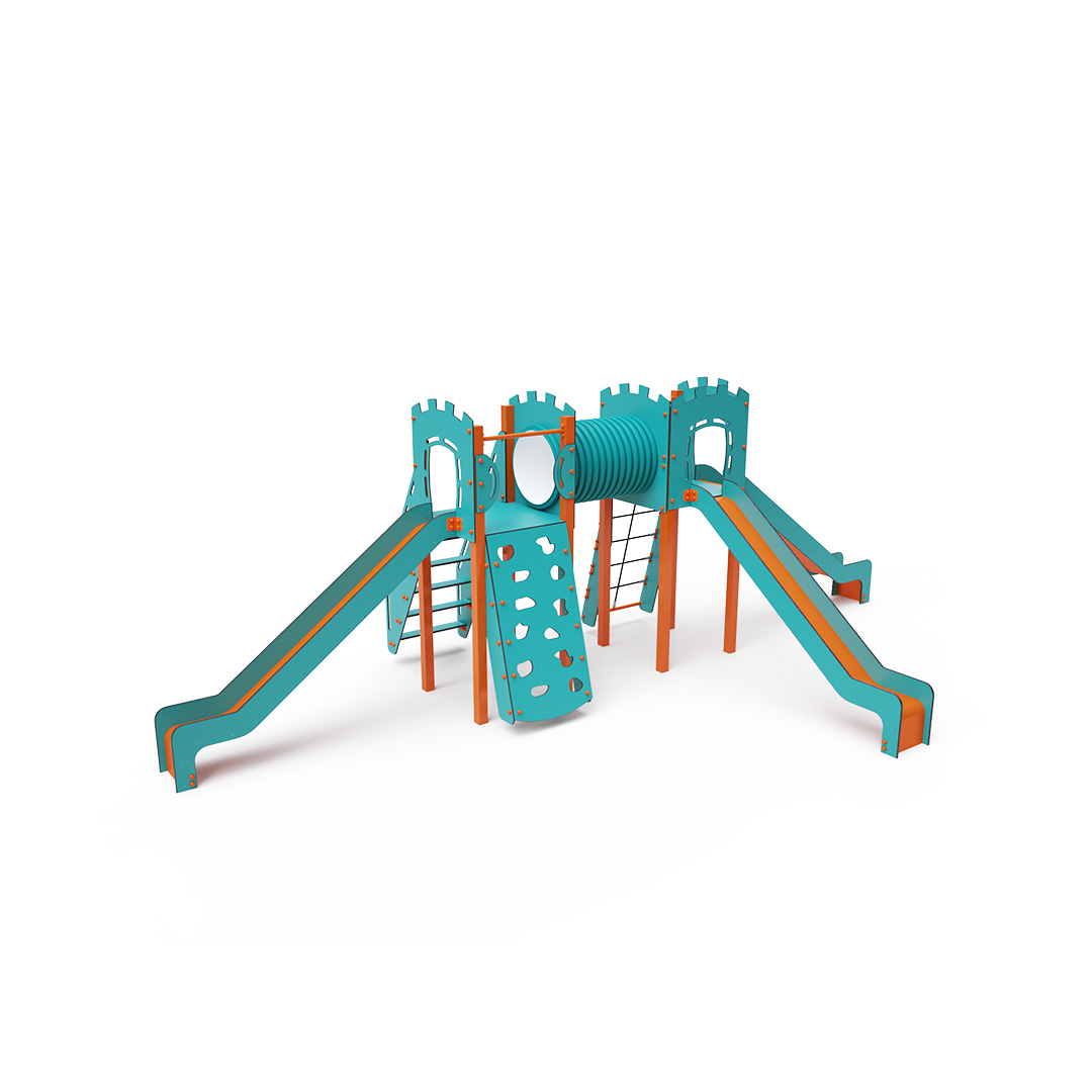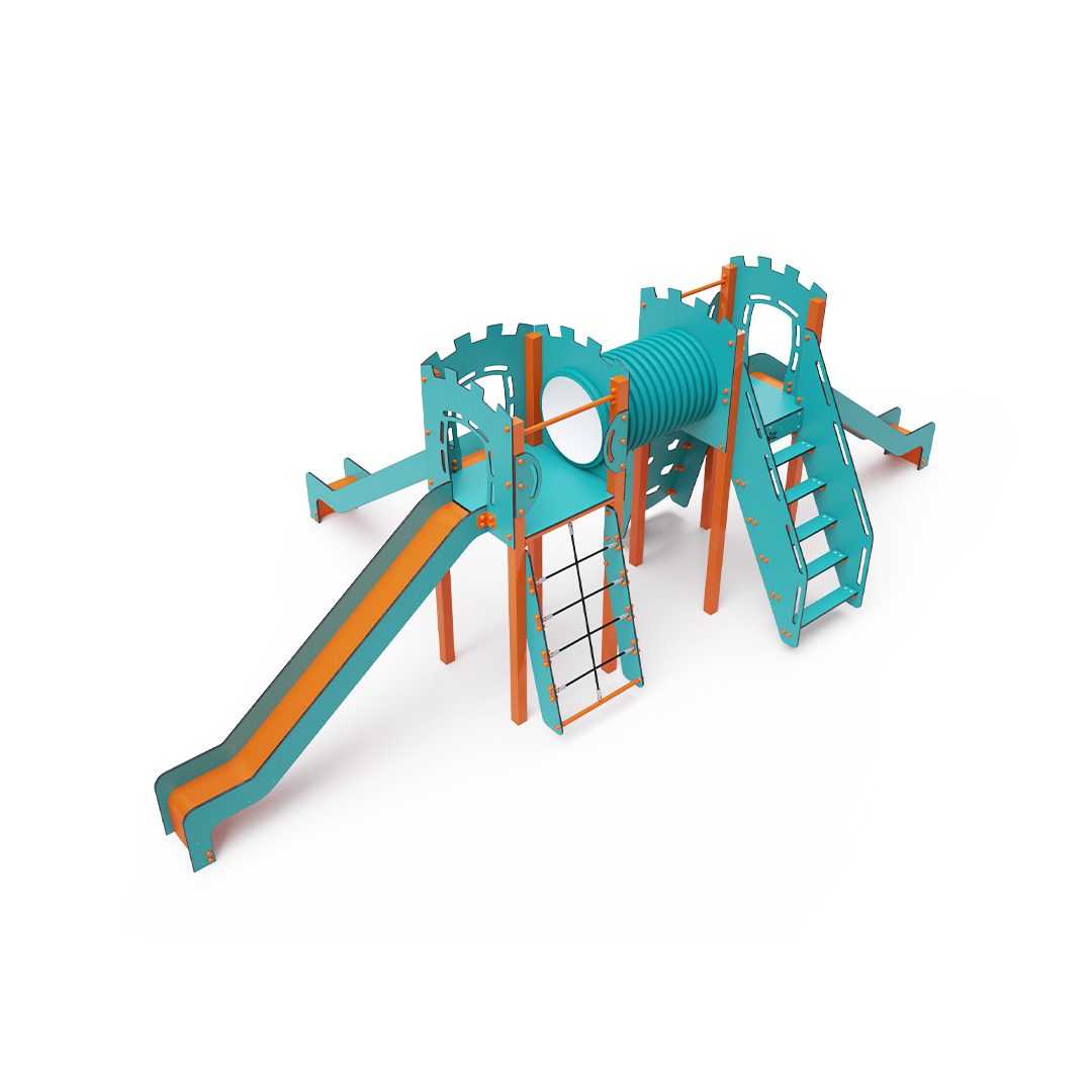 - alagút, lépcső, ferde kötélháló, ferde mászófal, 3× csúszda