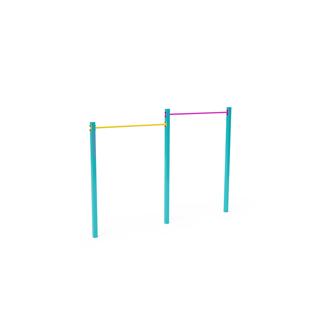 A kétrészes húzódzkodó szerkezete horganyzott és porszórt acélból készül. Minden kötőelem rozsdamentes acélból készül és a fokozott tartósság és biztonság érdekében műanyag kupakkal van lezárva. A használt anyagoknak köszönhetően az eszköz minimális karbantartást igényel! Az eszközt úgy terveztük, hogy a hosszú élettartam mellett a maximális biztonságot is garantálja! Street workout eszközeink megfelelnek az MSZ EN 16 630 szabvány által megkövetelt biztonsági előírásoknak.