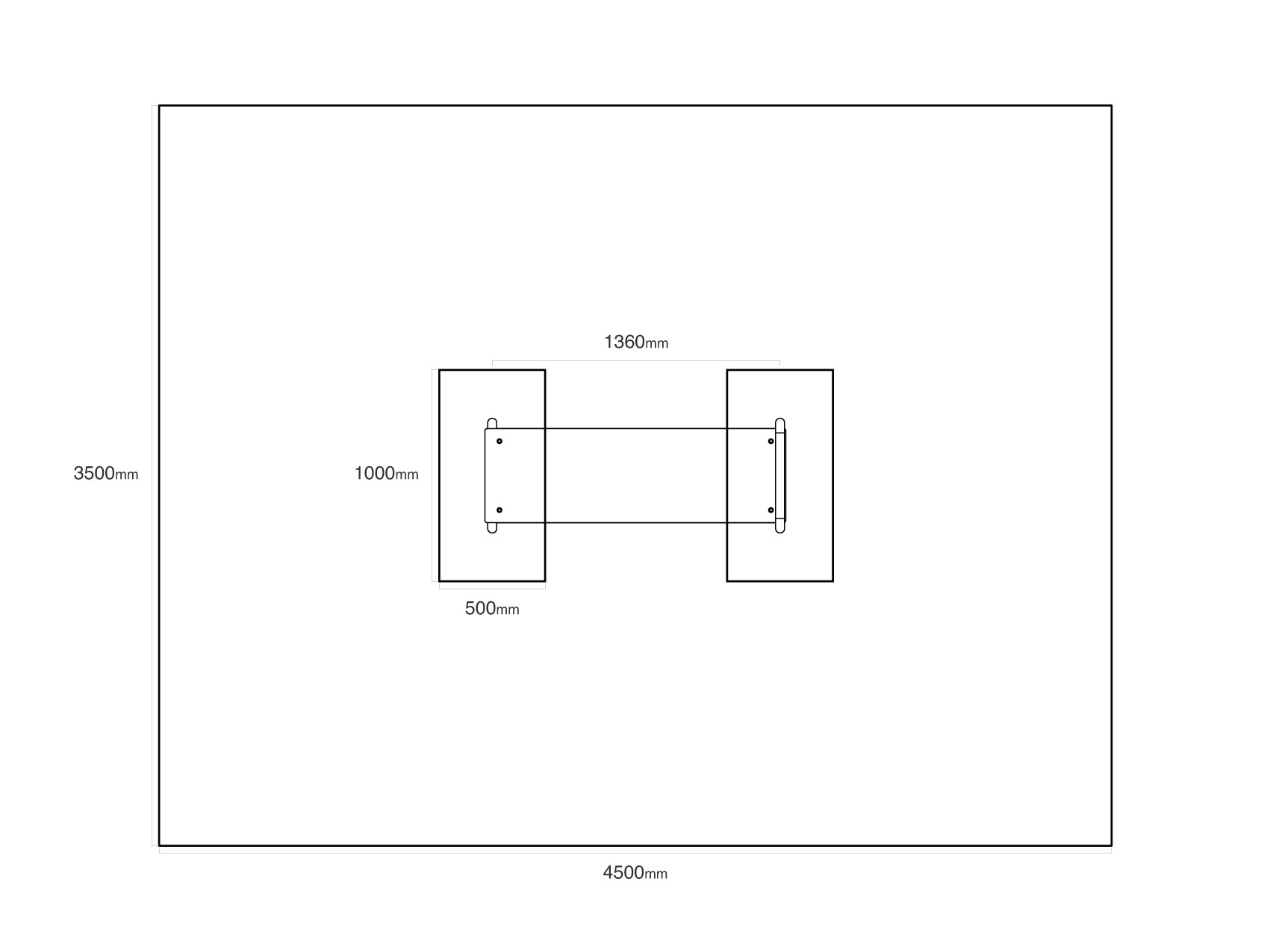 - Biztonsági zóna: 4,5 × 3,5 m