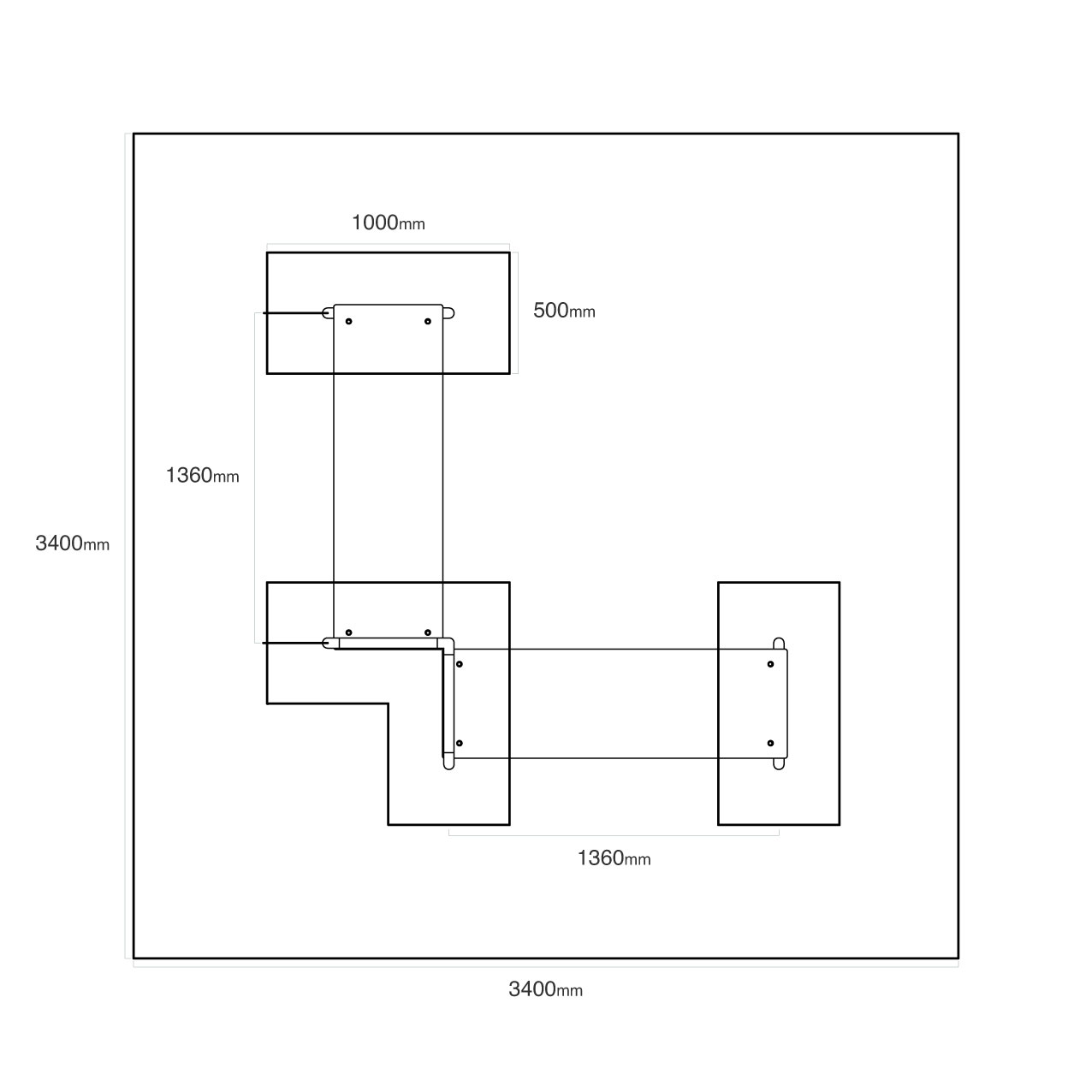 - Az eszköz méretei: 1,9 × 1,9 × 0,6 m (HxSzxM)