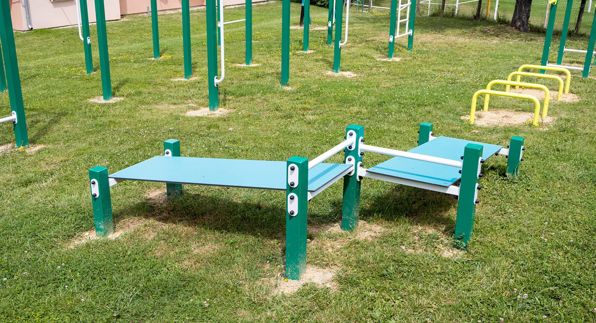 A kétrészes hasizomerősítő pad szerkezete horganyzott és porszórt acélból, lapja pedig HPL jelölésű magas nyomású laminált kompaktlemezből készül. A magas nyomású HPL lemez törhetetlen, nem mérgező, újrahasznosítható, továbbá vegyszer- és UV álló. Minden kötőelem rozsdamentes acélból készül és a fokozott tartósság és biztonság érdekében műanyag kupakkal van lezárva. A használt anyagoknak köszönhetően az eszköz minimális karbantartást igényel! Az eszközt úgy terveztük, hogy a hosszú élettartam mellett a maximális biztonságot is garantálja! Street workout eszközeink megfelelnek az MSZ EN 16 630 szabvány által megkövetelt biztonsági előírásoknak.