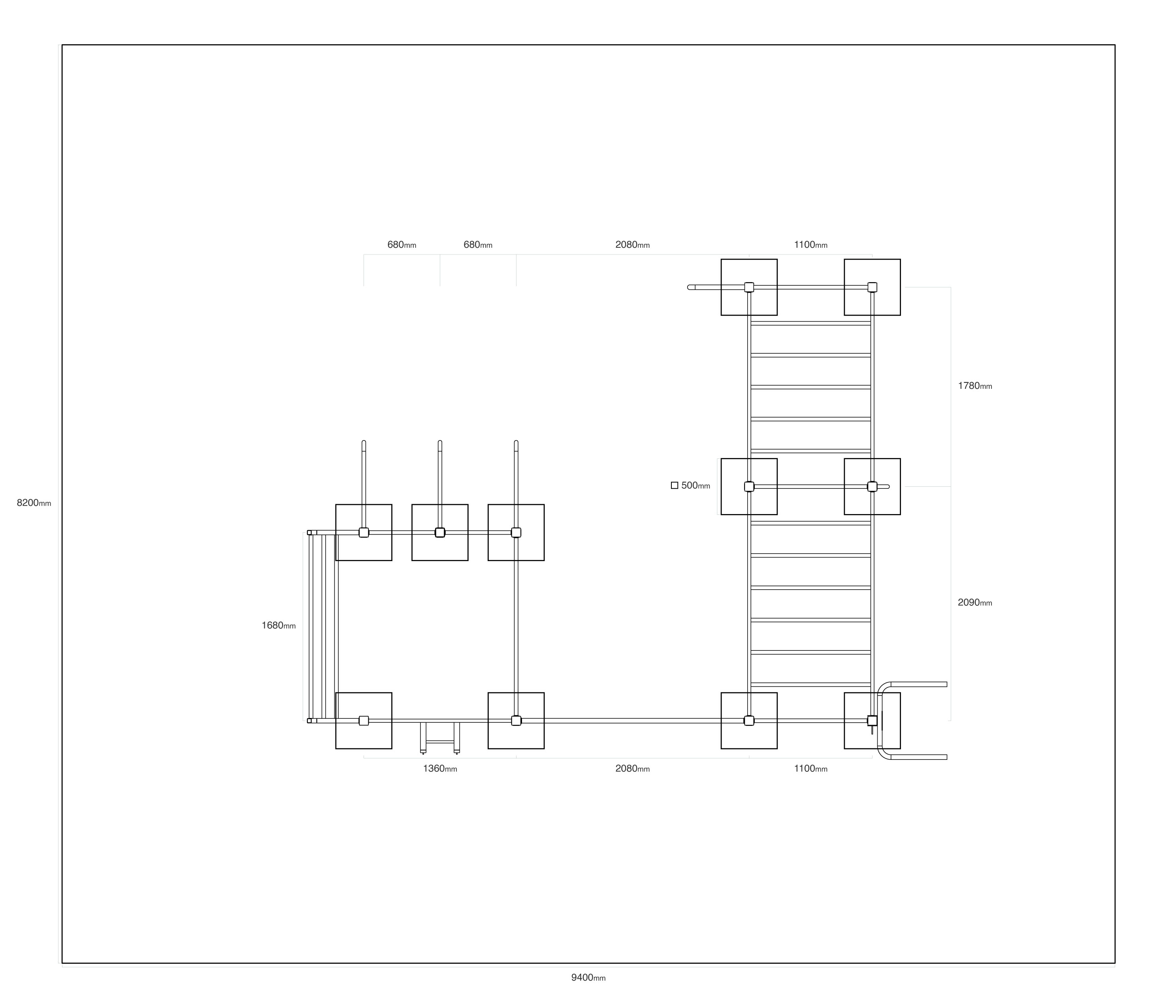 - Biztonsági zóna: 8,7 × 9,6 m (83,52 m2)